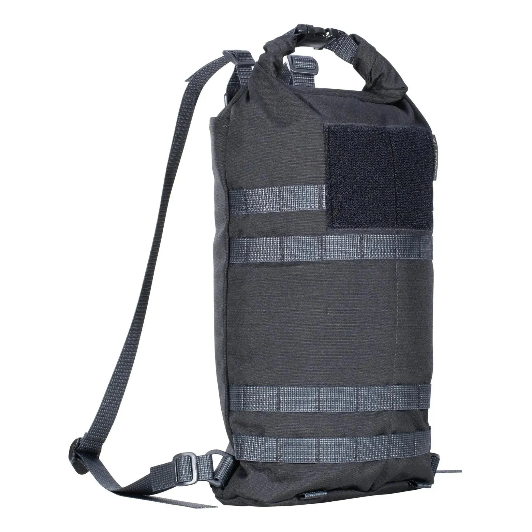 Zudem verfügt der Rucksack auf der Außenseite über vier PALS-Gurtbandreihen. Diese können verwendet werden, um Taschen, Bungee-Seile und Schnallen anzubringen, um den Hatka schnell an einem größeren Rucksack zu befestigen. Die vier Gurtschlaufen an der Unterseite können für elastische Schnüre verwendet werden, sodass Du Zubehör unter dem Rucksack tragen kannst.