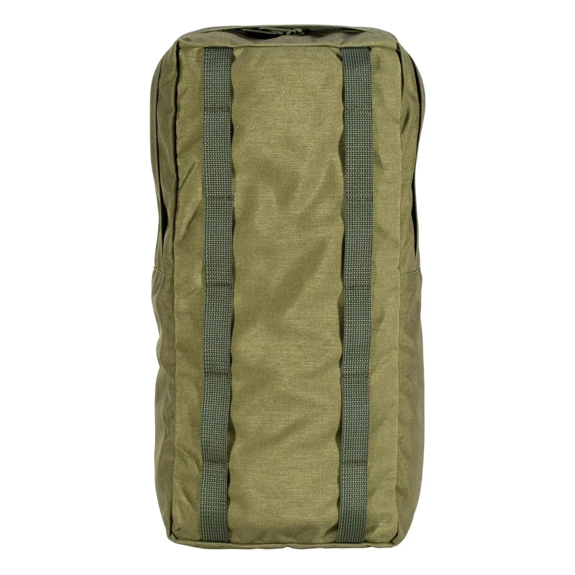 Der Reißverschluss der Seitentasche ist für zusätzliche Wasserabweisung und Schutz vor Abrieb und Schmutz abgedeckt. Das vertikale Gurtband auf der Vorderseite hält die Kompressionsriemen Deines Rucksacks sauber über der Tasche, sodass diese auch richtig komprimiert werden kann. Sie können auch als Befestigungspunkte für Bungee-Seile, Karabiner und ähnliches verwendet werden und lassen einen ca. 13 cm breiter Spalt zwischen ihnen. So kannst Du beispielsweise Äxte, Angelruten usw. verstaut hinter der Tasche transportieren.