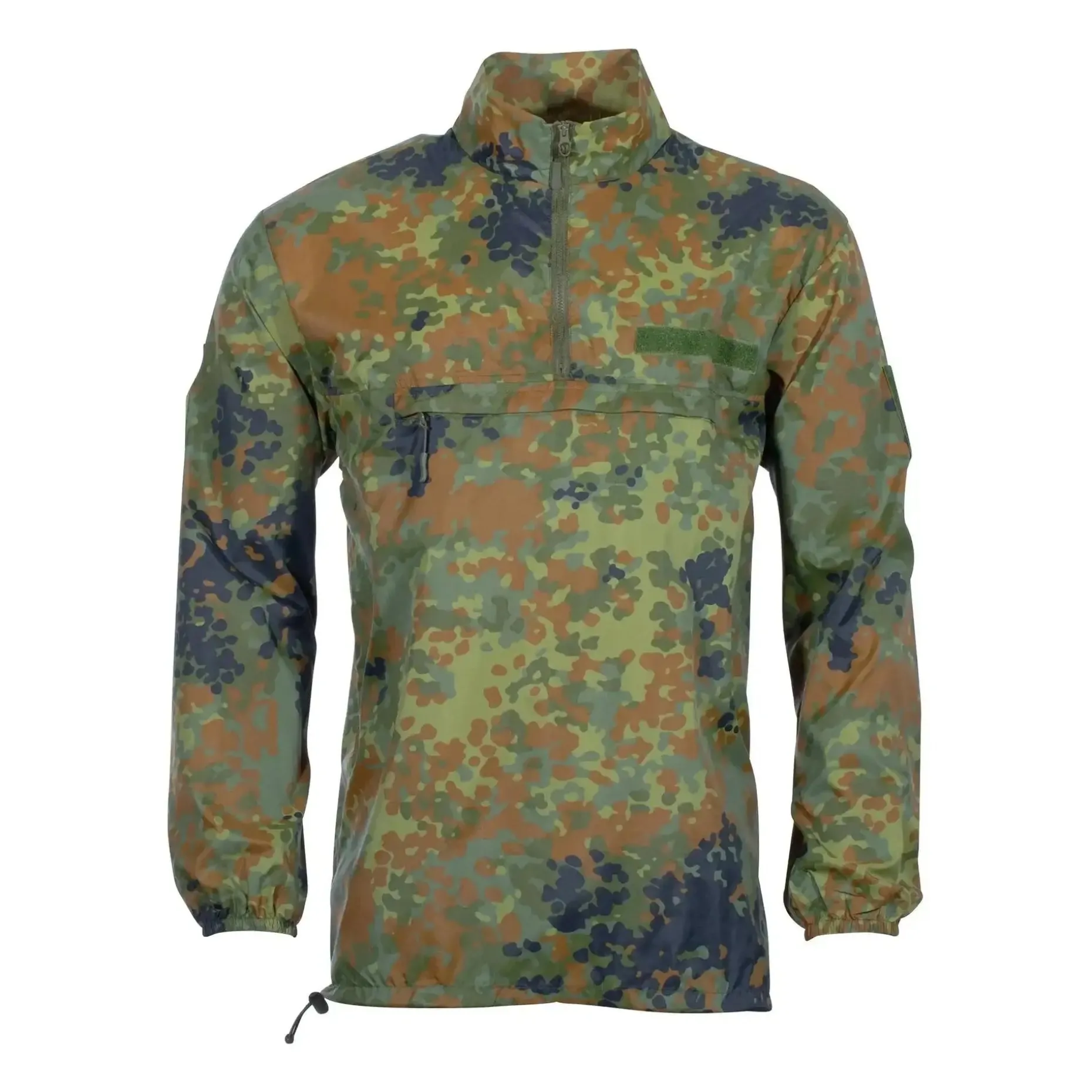 Das TACGEAR Windshirt ist ein robustes, atmungsaktives Oberteil für Einsätze, Training und Outdoor-Aktivitäten unter wechselnden Wetterbedingungen. Dank der Teflon-Beschichtung ist das Material wasser- und schmutzabweisend, während das leichte Ripstop-Nylon hohe Reißfestigkeit bietet. Mit dem Half-Zip-Reißverschluss lässt sich das Shirt schnell an- und ausziehen, und über den Kordelzug an der Taille kannst Du den Sitz individuell anpassen. Die große Brusttasche mit Reißverschluss bietet sicheren Stauraum für Karten, Notizen oder kleine Ausrüstungsgegenstände. Namensschild- und Dienstgradklettflächen an Brust und Schultern ermöglichen eine flexible Kennzeichnung, während elastische Armbündchen für optimalen Tragekomfort sorgen. Ein funktionelles Windshirt, das Dich bei Wind und leichtem Regen zuverlässig schützt – ideal für taktische Einsätze oder den täglichen Outdoor-Gebrauch.