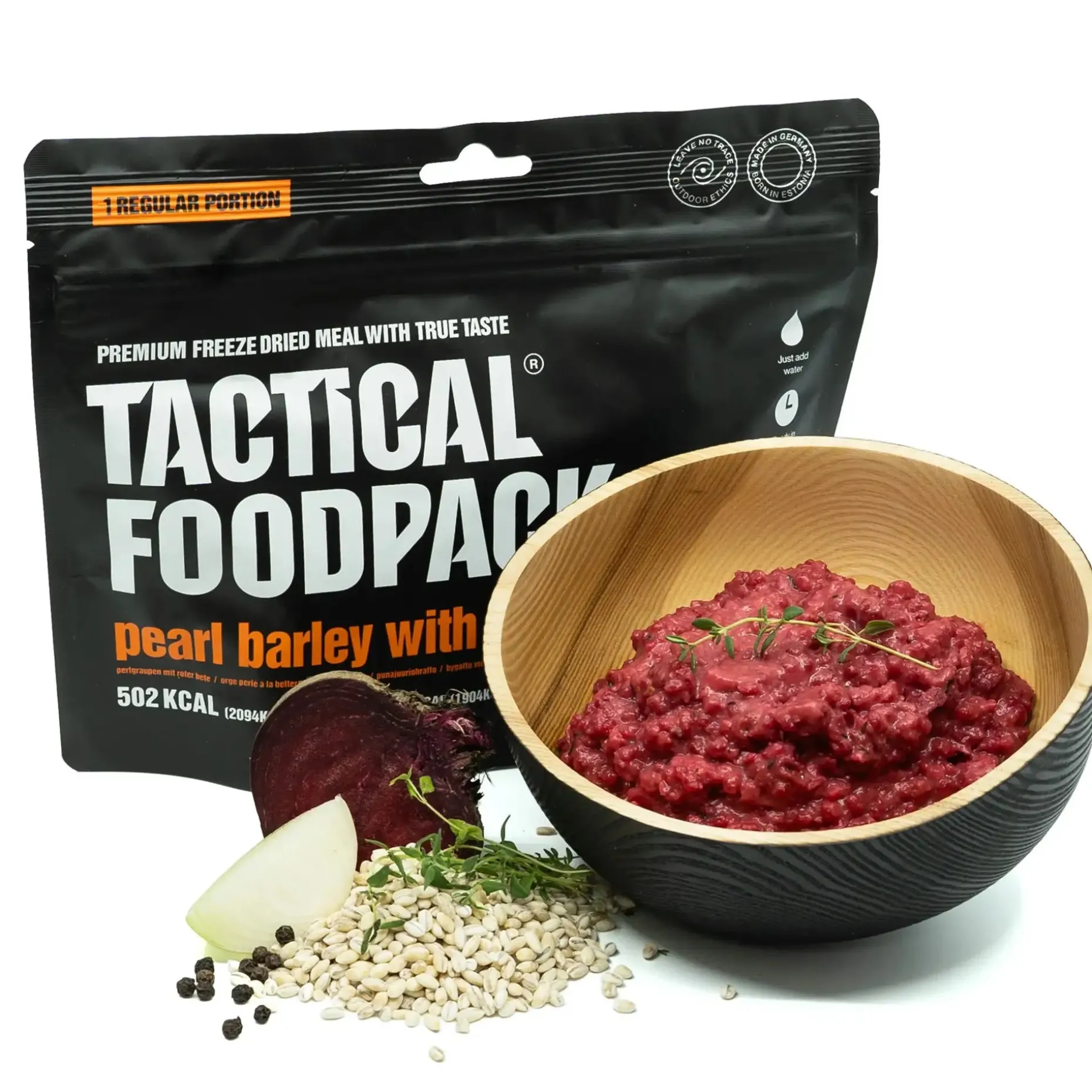 Die Tactical Foodpack Perlgraupen mit Roter Bete liefern Dir eine vollwertige Mahlzeit mit erdig-frischem Geschmack – perfekt für unterwegs, Einsätze oder Deinen Notvorrat. Die Kombination aus Perlgraupen, Roter Bete und ausgewählten Kräutern ist nährstoffreich, sättigend und sorgt für Abwechslung im Outdoor-Menü.
