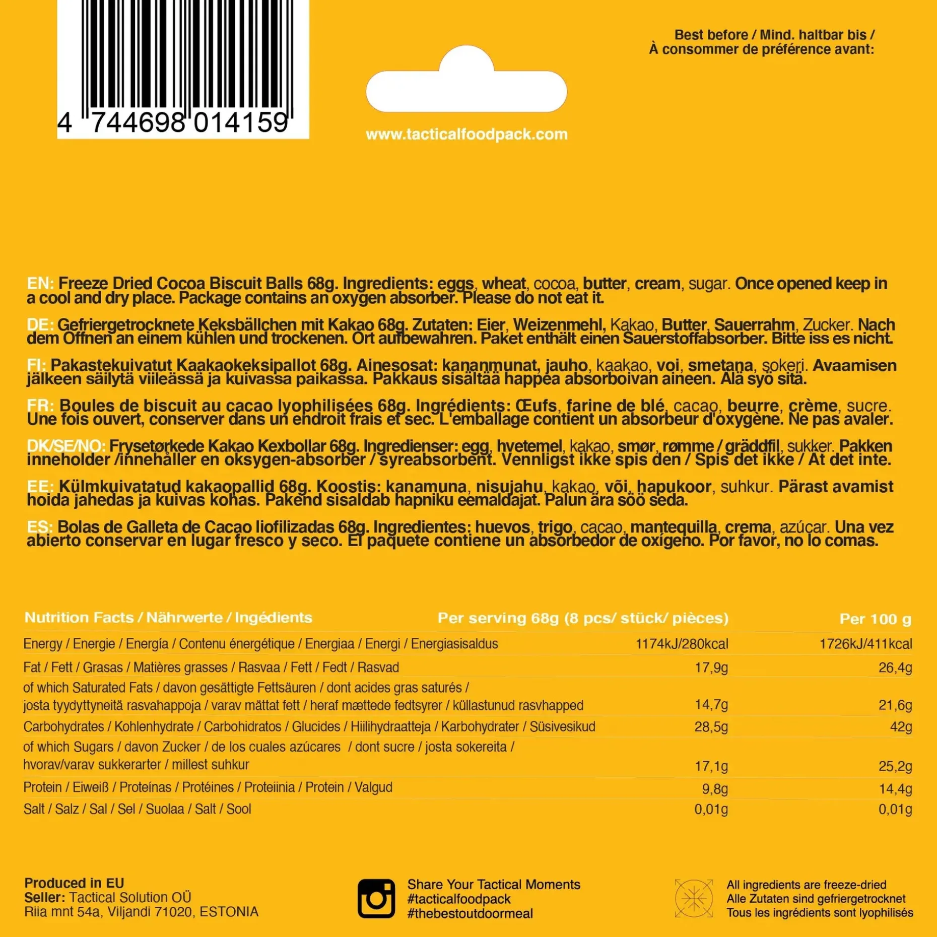 Knusprig, süß und nostalgisch im Geschmack, sind sie die perfekte Belohnung nach einem langen Marsch oder der süße Lichtblick in Deinem Notvorrat. Durch das Gefriertrocknen bleibt das volle Aroma erhalten – gleichzeitig sind die Bällchen leicht, kompakt und sofort verzehrbereit, ganz ohne Vorbereitung.
