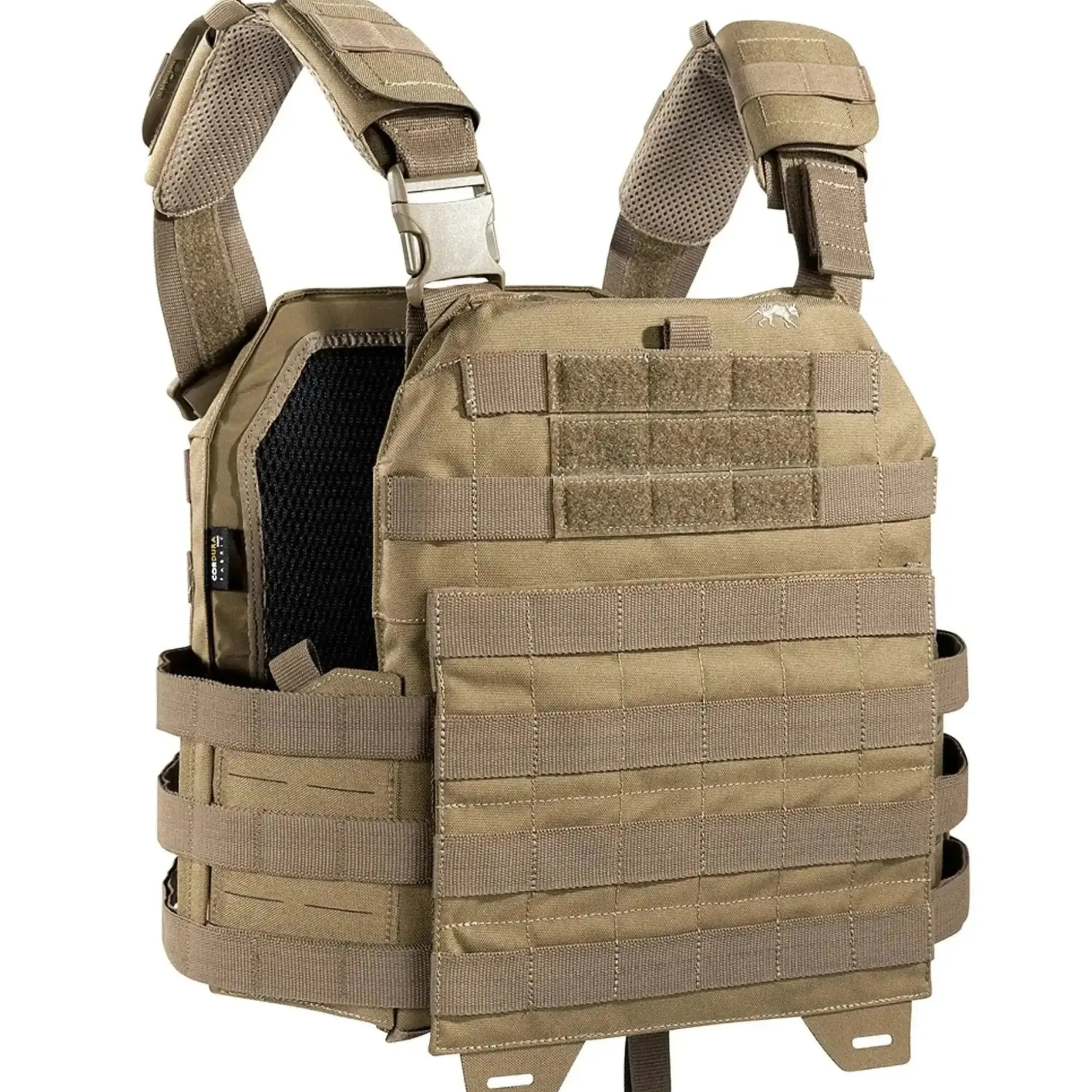 Der leichte Tasmanian Tiger Plattenträger Plate Carrier MKIV verfügt über einen abnehmbaren Frontpanel. Dieser kann bestückt und dann nach Bedarf wieder angebracht werden. Der Plattenträger ist verfügbar in zwei Größen, welche Platz für unterschiedliche Schutzplatten bieten. Das flexible Abwurfsystem ist für schnelles Ausziehen mit einer QR-Schließe versehen, welche rechts oder links montiert werden kann. Ein kräftiger Zug öffnet den Verschluss ohne großen Aufwand. Um den optimalen Tragekomfort zu erreichen, sind sowohl die gepolsterten Träger als auch die Seitenflügel in der Größe verstellbar. Molleflächen an Front und Seitenteilen runden den MKIV ab.