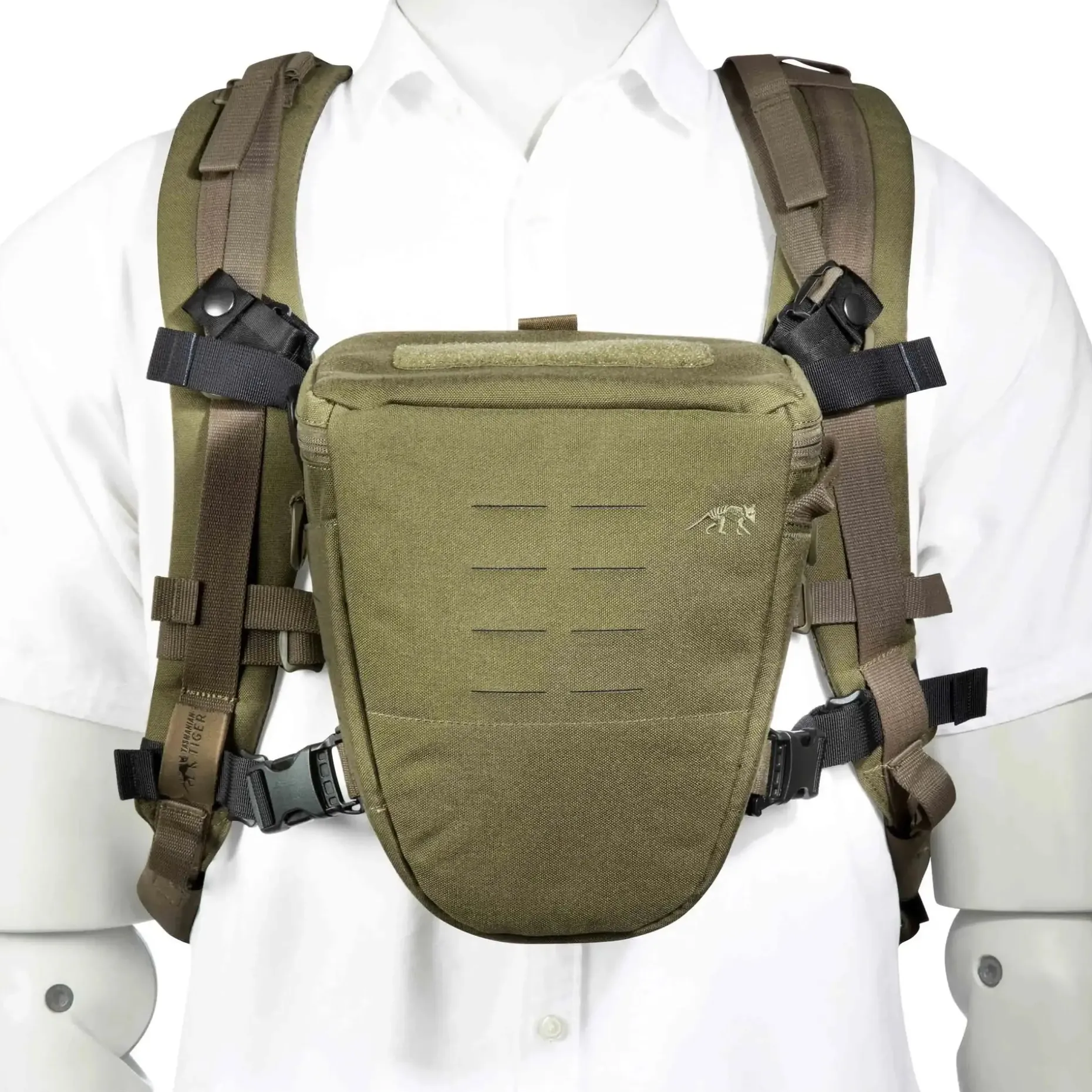 – Verschiedene Anschlussmöglichkeiten mittels Haken, SR- oder Molle-Schließe