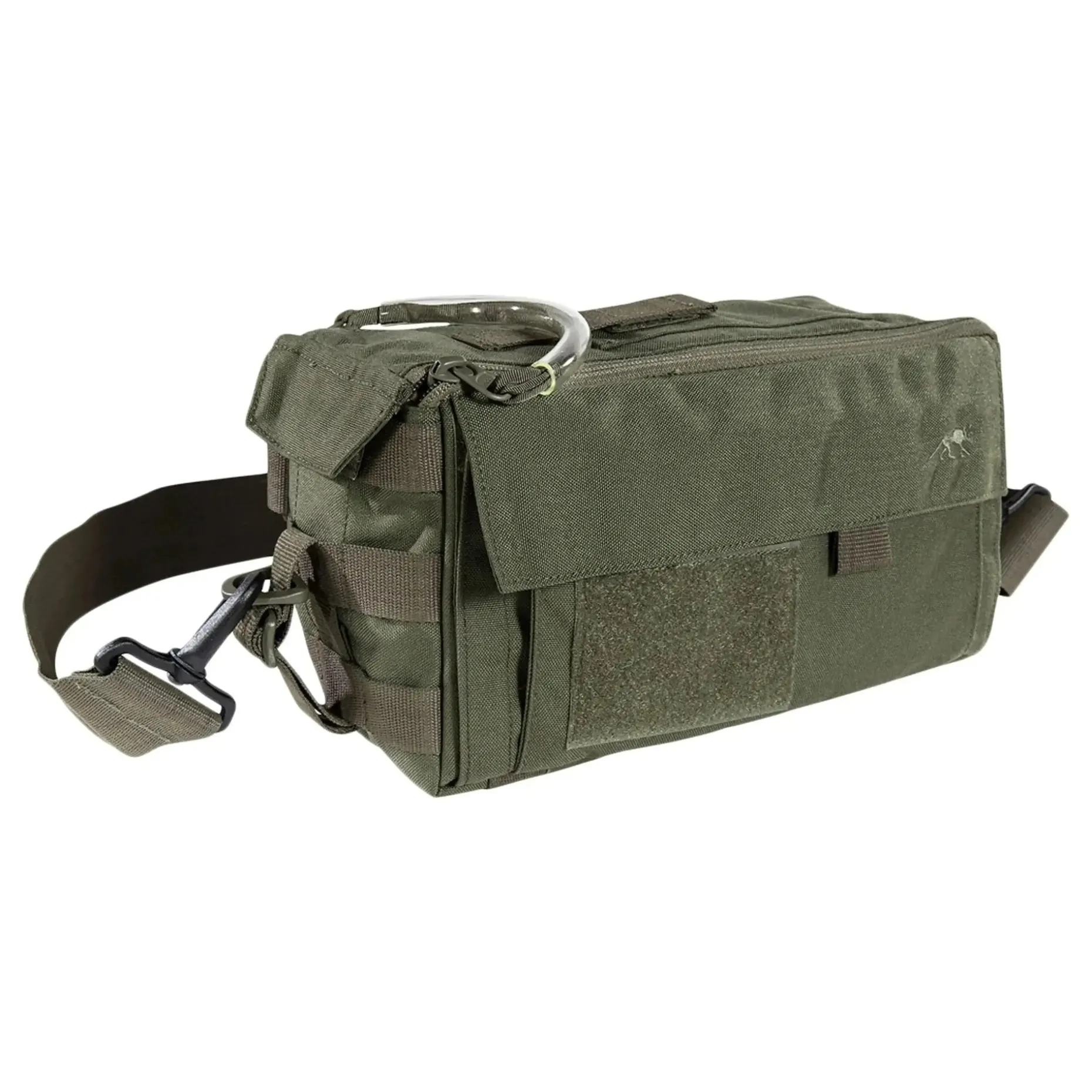 Diese kompakte Hüfttasche für medizinische Ausrüstung lässt sich dank mitgeliefertem Tragegurt auch als Schultertasche nutzen. Der Reißverschluss lässt sich beidseitig öffnen, sodass ein schneller Zugriff gewährleistet ist. Die Außentasche eignet sich am besten für schnell zugängiges Material wie Schere etc. Die Tasche lässt sich auch am Molle-System befestigen und braucht so keinen Tragegurt.