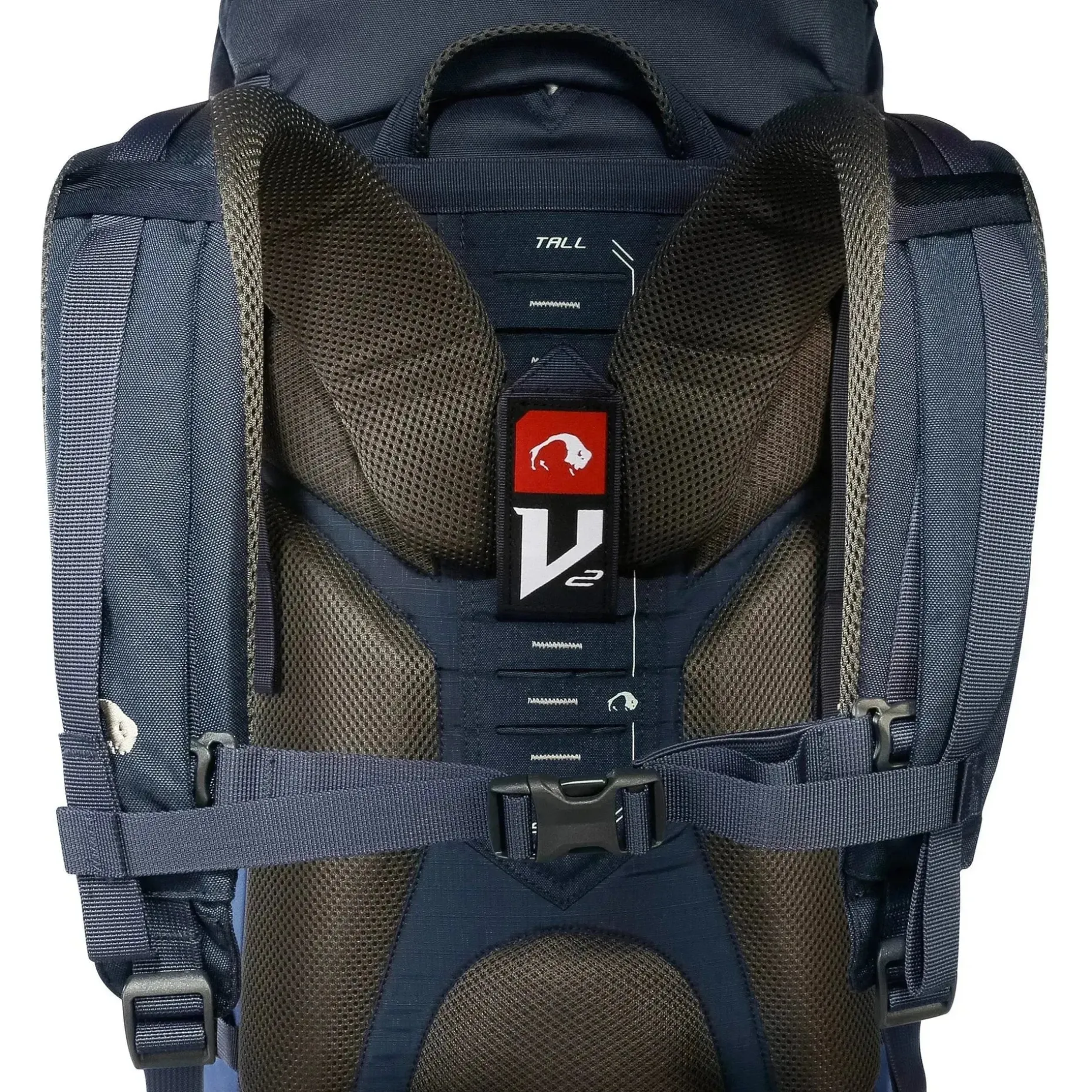 Das V2-Tragesystem sorgt für einen hohen Tragekomfort, selbst bei schweren Lasten bis zu 25 Kilogramm. Gewichtsoptimierte Materialien und ein dreidimensional ausgeformter Hüftgurt machen das Tragen des Rucksacks rückenschonend und angenehm. Der höhenverstellbare Brustgurt sorgt für zusätzlichen Halt und Stabilität.