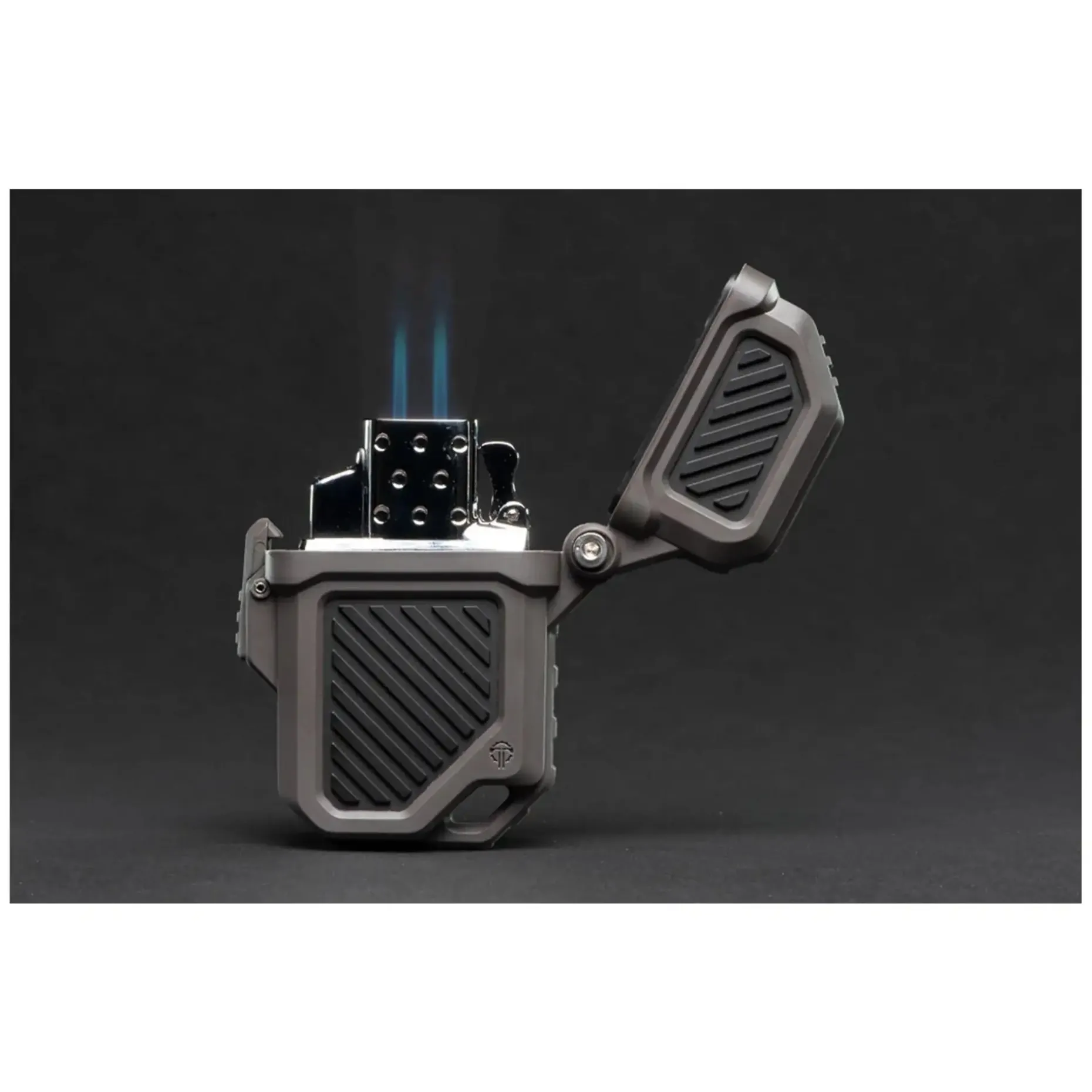 Die Armor ist mit Zippo®-Feuerzeug-Einsätzen kompatibel, sowohl für Butan- als auch für Flüssigkraftstoff-Versionen (diese sind nicht im Lieferumfang enthalten). Sie ist mit einer rostfreien Stahlscherensprungfeder und einer Achse ausgestattet, die ein zuverlässiges Öffnen mit nur einer Hand ermöglichen. Der große Lanyard-Haken sorgt dafür, dass Du Dein Feuerzeug sicher an Deinem Equipment befestigen kannst, so dass es immer griffbereit ist, egal wo Du Dich gerade befindest.