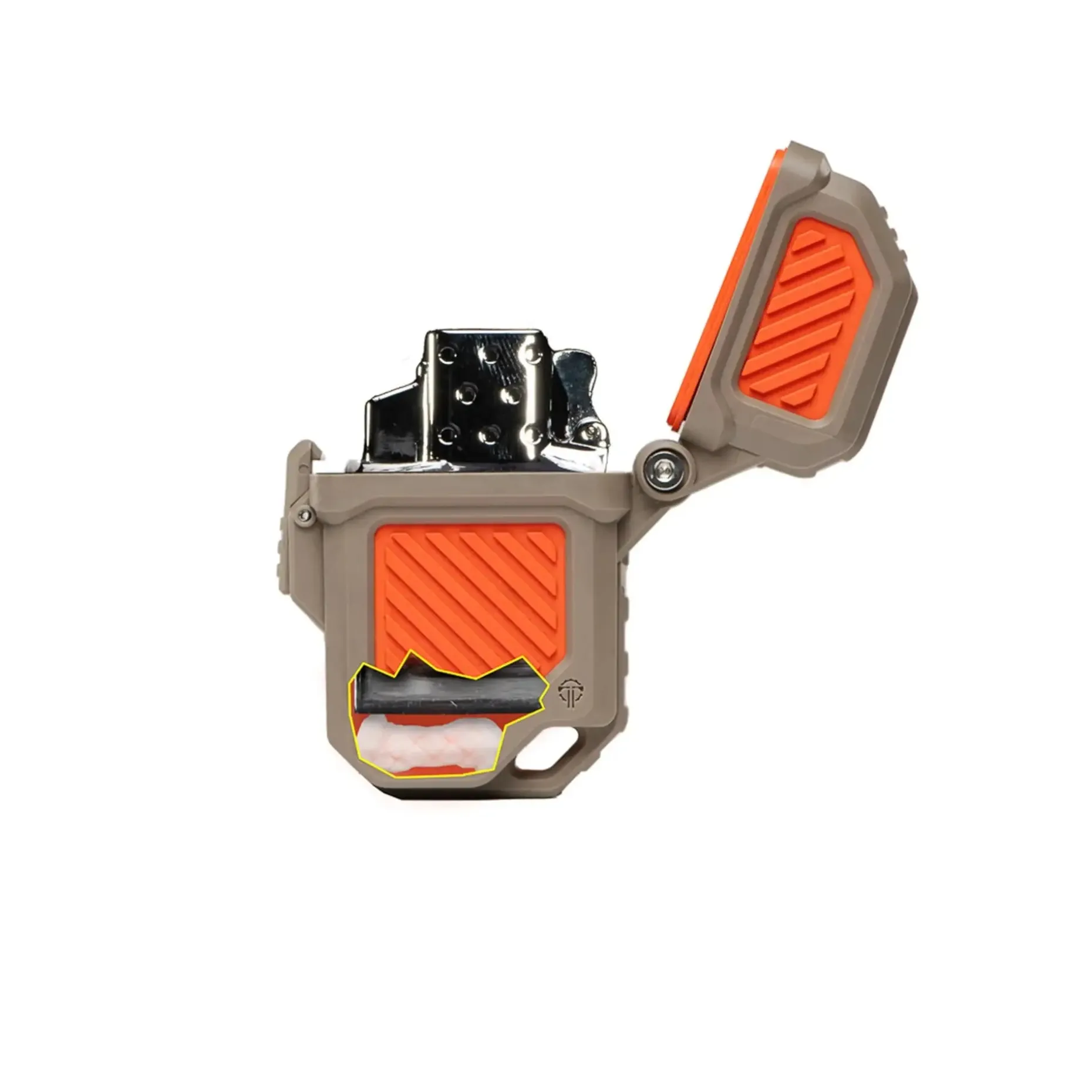 Zusätzlich enthält die Armor ein Tinder-Quik™-Feuerstarter im Boden, der Dir beim Entzünden eines Feuers hilft, falls Du unterwegs bist. Hergestellt in den USA, ist diese Lighter Armor eine äußerst nützliche und strapazierfähige Ergänzung für Dein Outdoor- oder Survival-Set.
