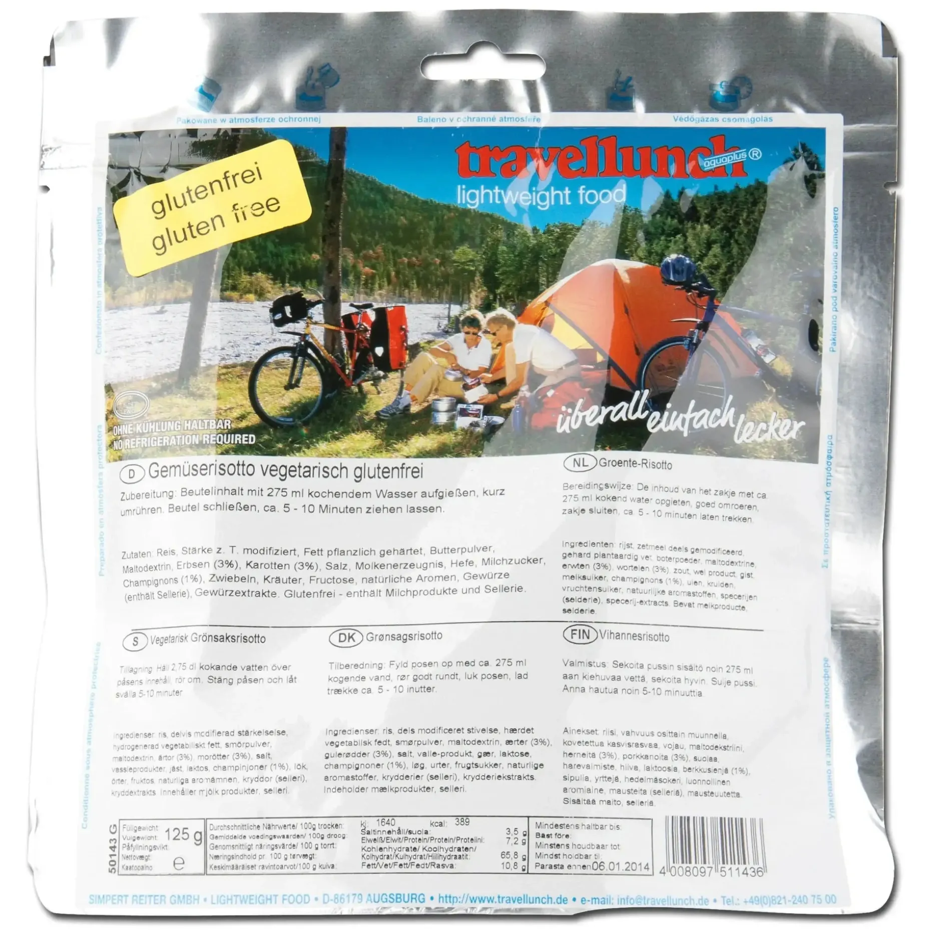 Das Travellunch Gemüserisotto vegetarisch glutenfrei 1 Packung ist die ideale Hauptmahlzeit für den Notfall, für den Campingausflug oder für Wanderungen. Es ist nicht nur schmackhaft, sondern stellt auch sicher, dass Du in der freien Natur gut versorgt bist.