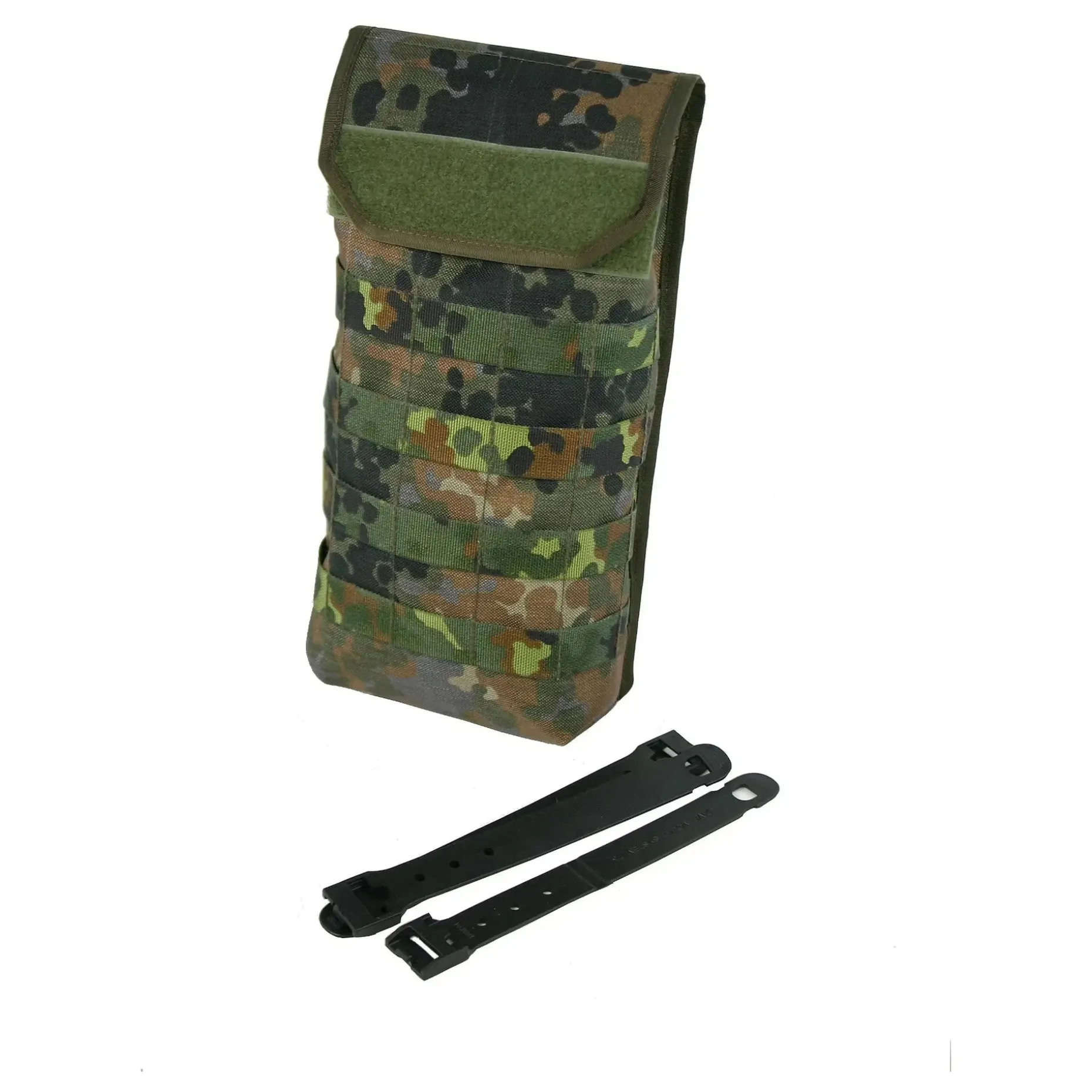 Der Hydration Carrier 2 L ist kompatibel mit dem Vulcan II System. Er ist geeignet für alle gängigen 2 L Wasserblasen, diese können mit einem Gurtband im Inneren zusätzlich gesichert werden. Befestigt wird der Wasserblasenträger mit dem bewährten Fastick Systems an allen Modularschlaufen, auch IDZ. Außen ist der Träger mit zusätzlichen Molle Schlaufen ausgestattet und auf dem Deckel befindet sich eine Klettfläche für ID Patches.