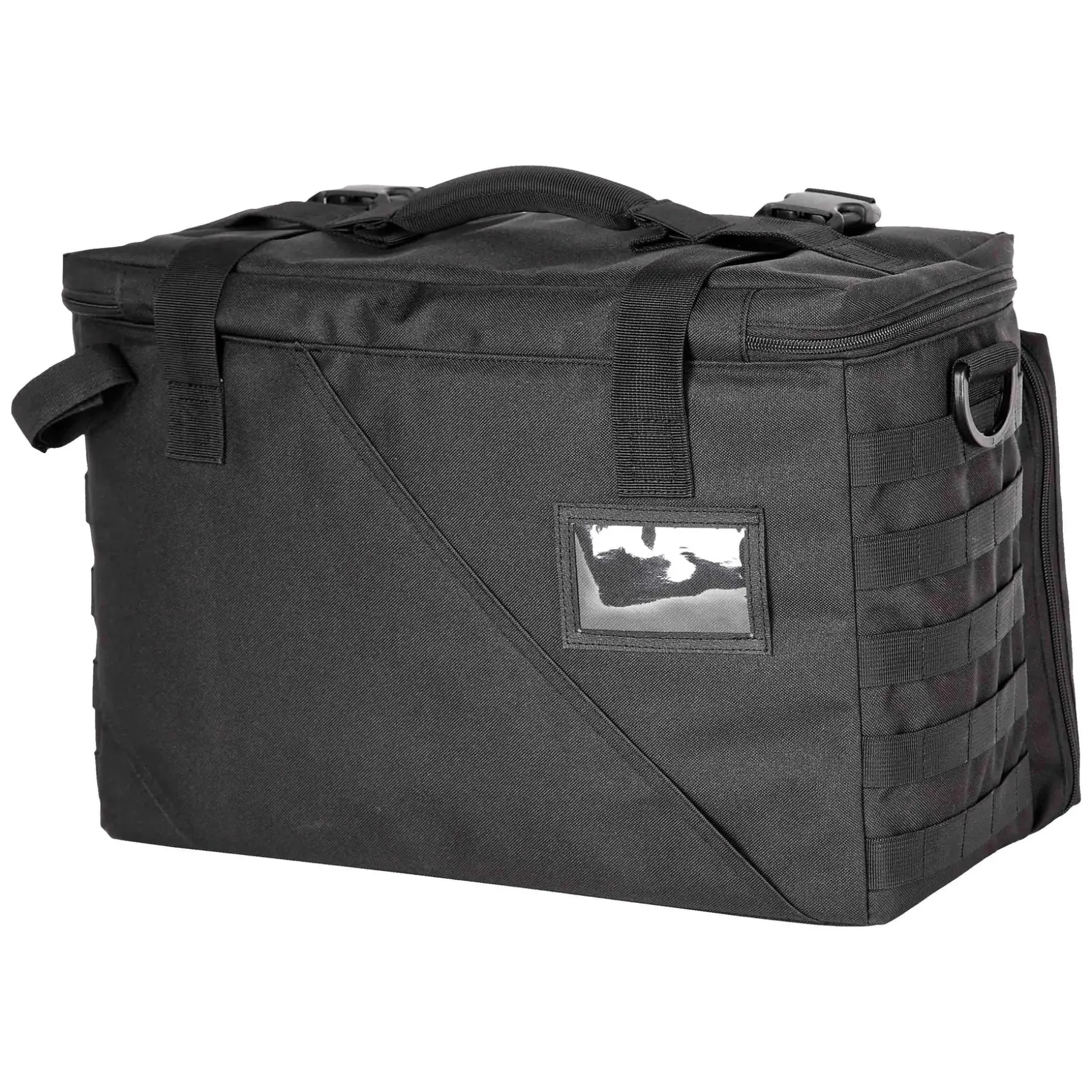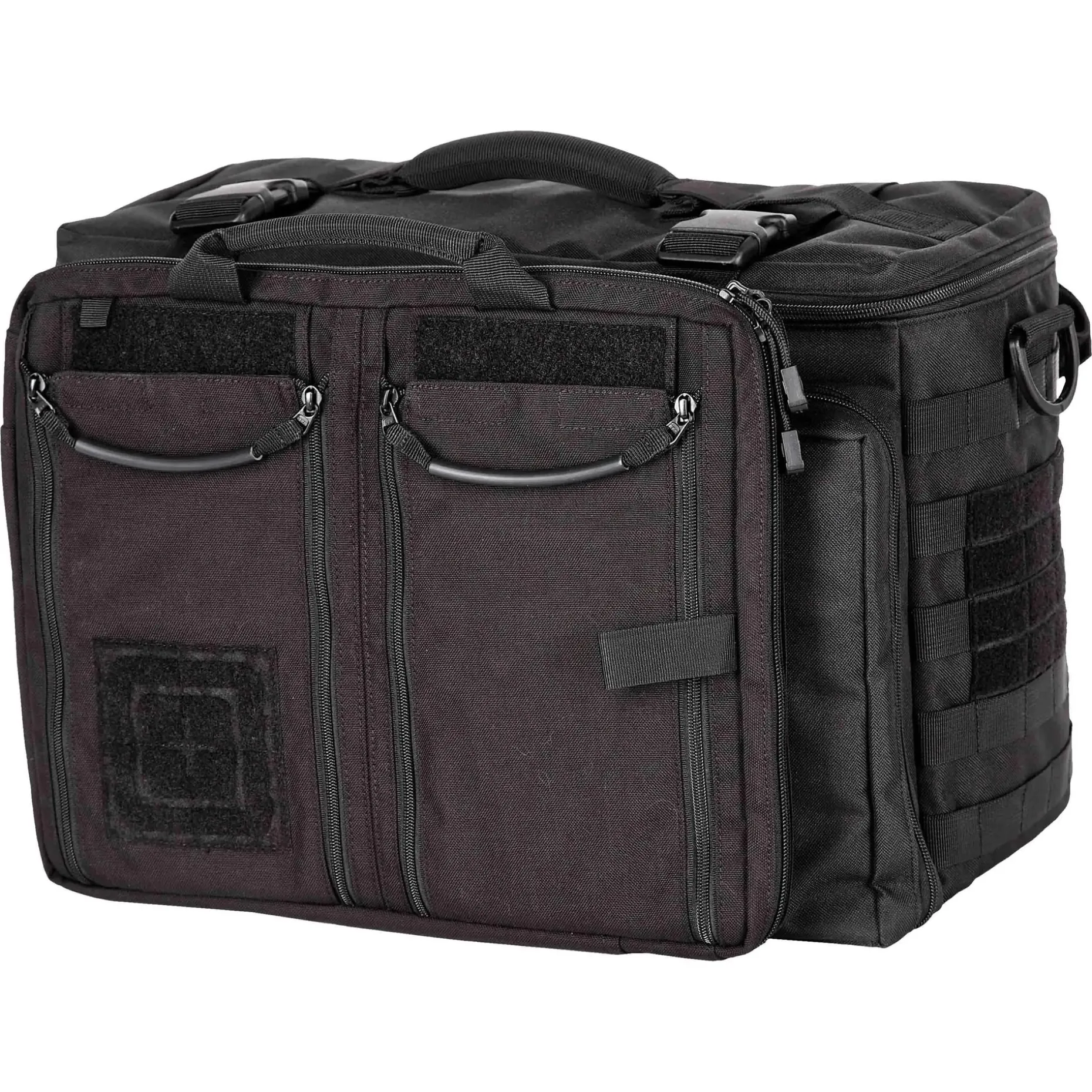 Die 5.11 Tasche Wingman Patrol dient sowohl als Organizer, Werkzeugkasten wie auch als funktionale Diensttasche. Sie ist ausgestattet mit gepolsterten Griffen sowie einem längenverstellbaren Tragegurt. Dank der herausklappbaren Kopfstützen-Sitzbefestigung können Sie sie am Beifahrersitz des Dienstfahrzeugs befestigen. Auf diese Weise können Sie die praktische Tasche ganz nach Ihren individuellen Bedürfnissen transportieren. In einem großen Hauptfach mit klettbaren Unterteilungen, Mollegurtbandsystem im Deckel, 2 Reißverschluss-Netztaschen und einer Innenwand für klettbare Taschen mit den Maßen 51 x 12 x 31 cm ( L x B x H) können Sie Ihre Ausrüstung verstauen. Sie wird abgerundet durch ein Fach mit Organizer- und Stifteinschübe und Mollegurtbandsystem im Deckel, zwei seitliche Mollegurtbandsysteme und ein Steckfach und Klettfläche für ein Namensschild.