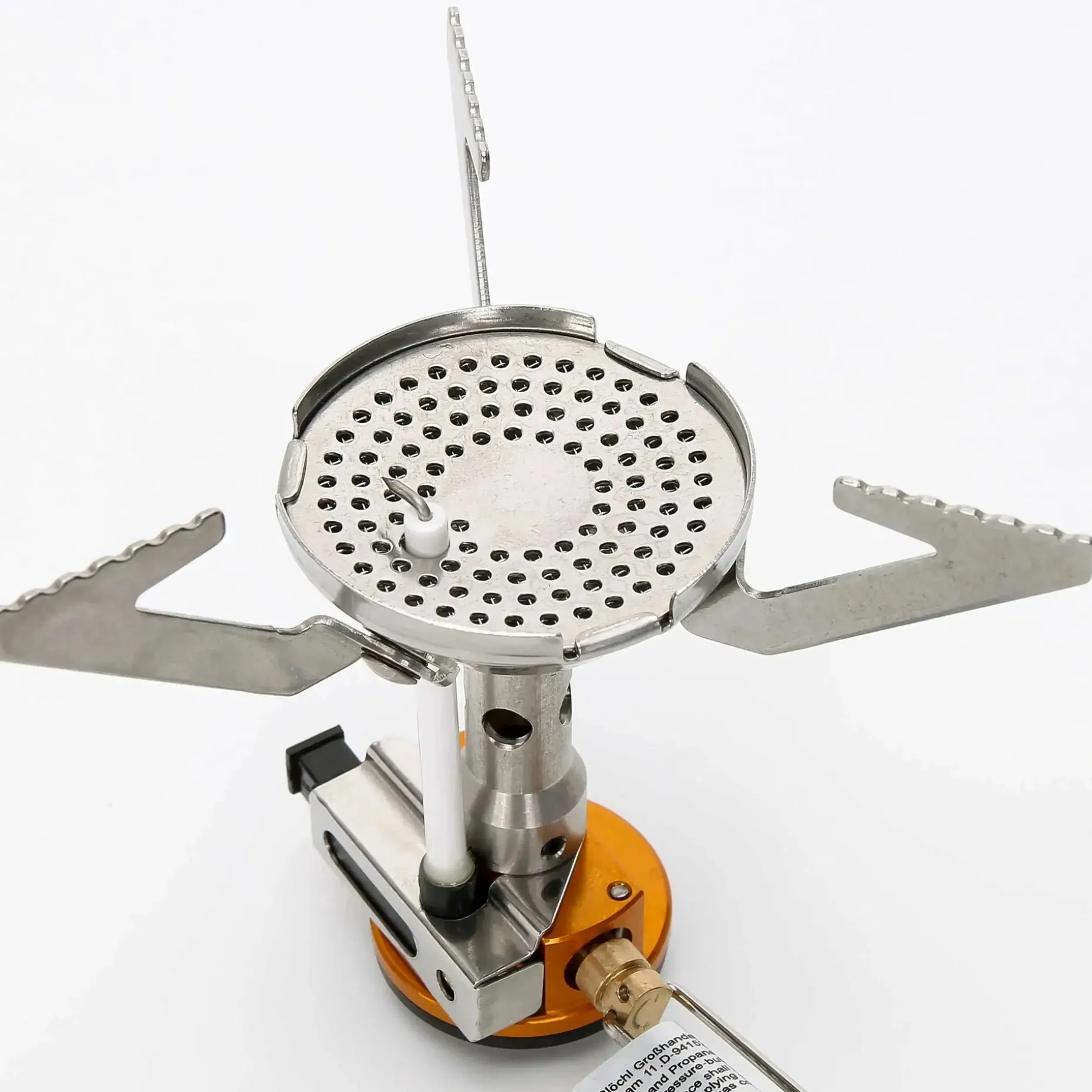 Das Kochset wird mit Wärmeaustauscher und Gaskocher geliefert. Letzterer ist mit einer klassischen Piezo-Zündung ausgestattet, was eine leichte Bedienung garantiert. Der Gaskocher kann mit allen handelsüblichen Gas-Schraubkartuschen betrieben werden.