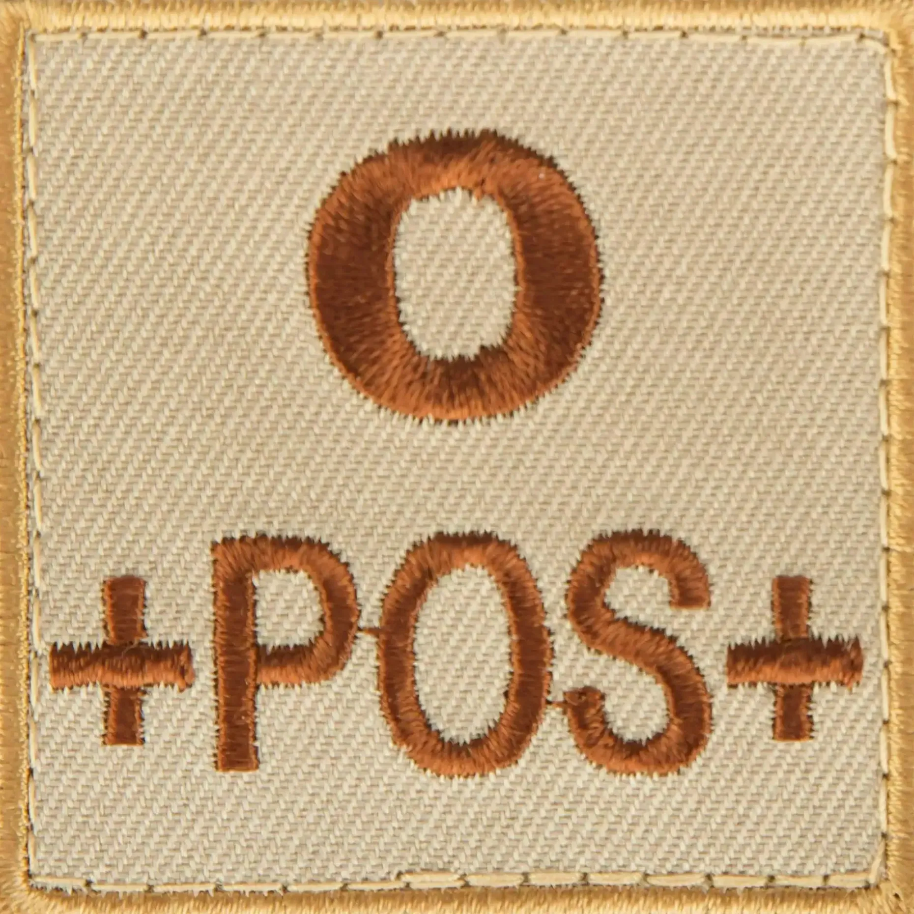 Gestickter Blutgruppenpatch mit Klett-Rückseite. Blutgruppe 0 positiv sand