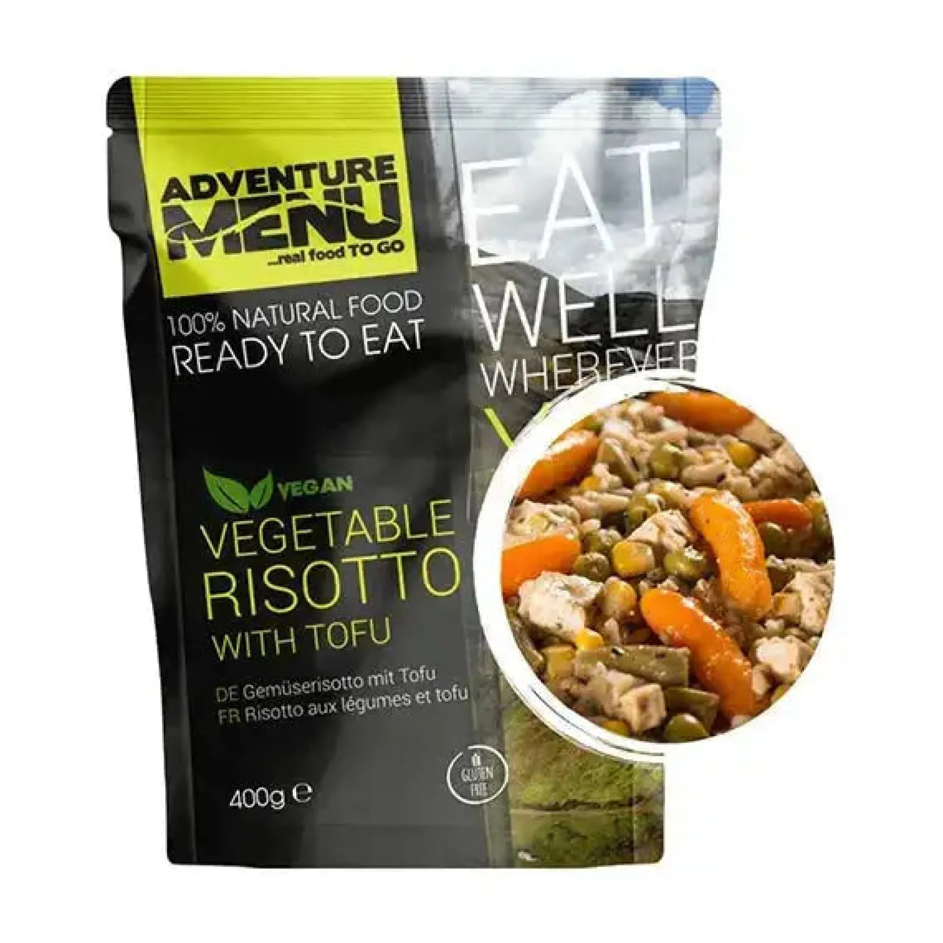 Entdecke das ultimative Powerpaket für Deine Abenteuerlust! Das vegetarische Adventure Menu Gemüserisotto mit Tofu ist perfekt für Deinen Notfallvorrat oder für Dein nächstes Outdoor-Abenteuer. Mit dieser laktose- und glutenfreien Mahlzeit wirst Du stundenlang mit Energie versorgt, damit Du jede Herausforderung meistern kannst.