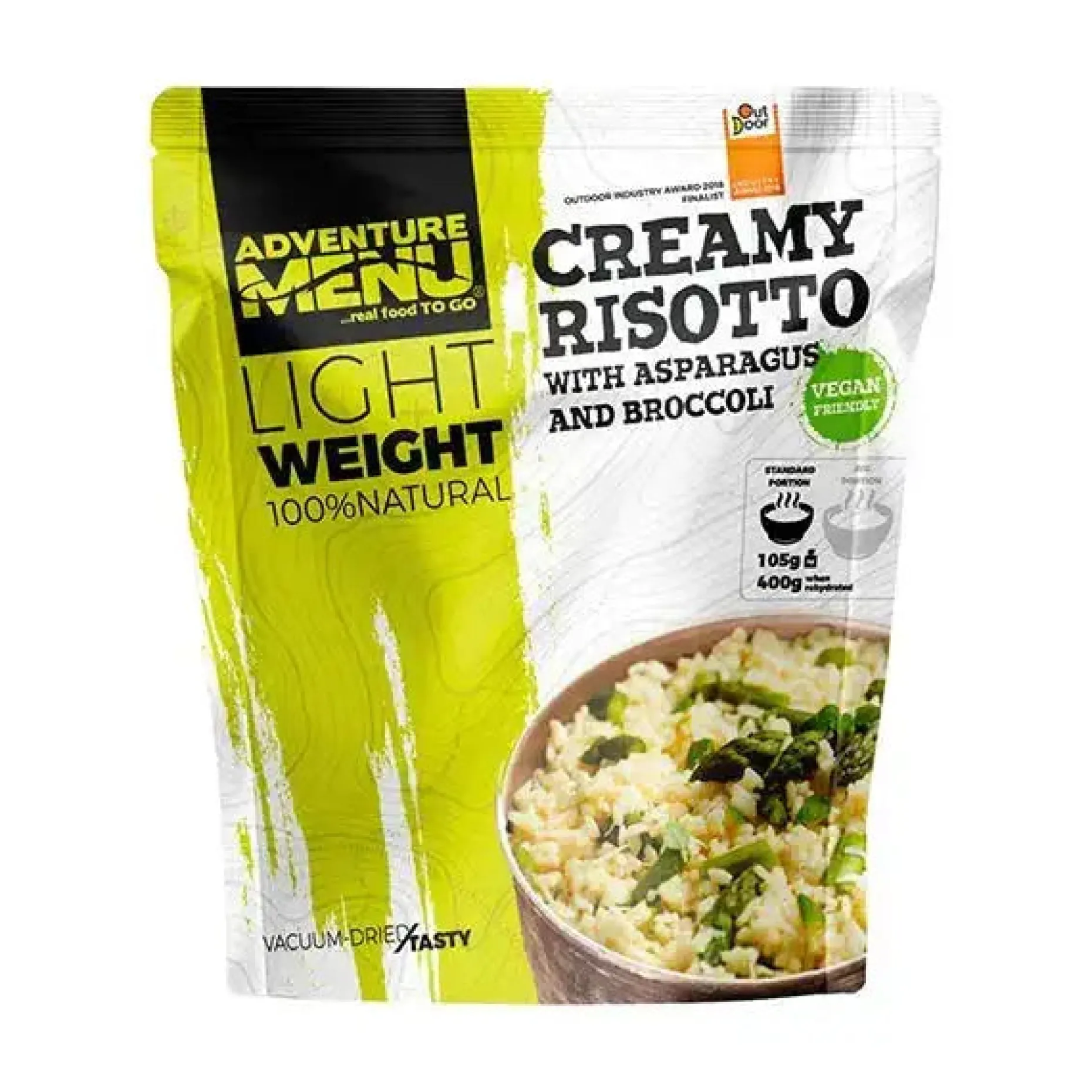 Entdecke das ultimative Powerpaket für Deine Abenteuerlust! Das vegane und laktosefreie Adventure Menu Lightweight Creme-Risotto mit Spargel und Brokkoli ist perfekt für Deinen Notfallvorrat oder für Dein nächstes Outdoor-Abenteuer. Mit dieser Mahlzeit wirst Du stundenlang mit Energie versorgt, damit Du jede Herausforderung meistern kannst.