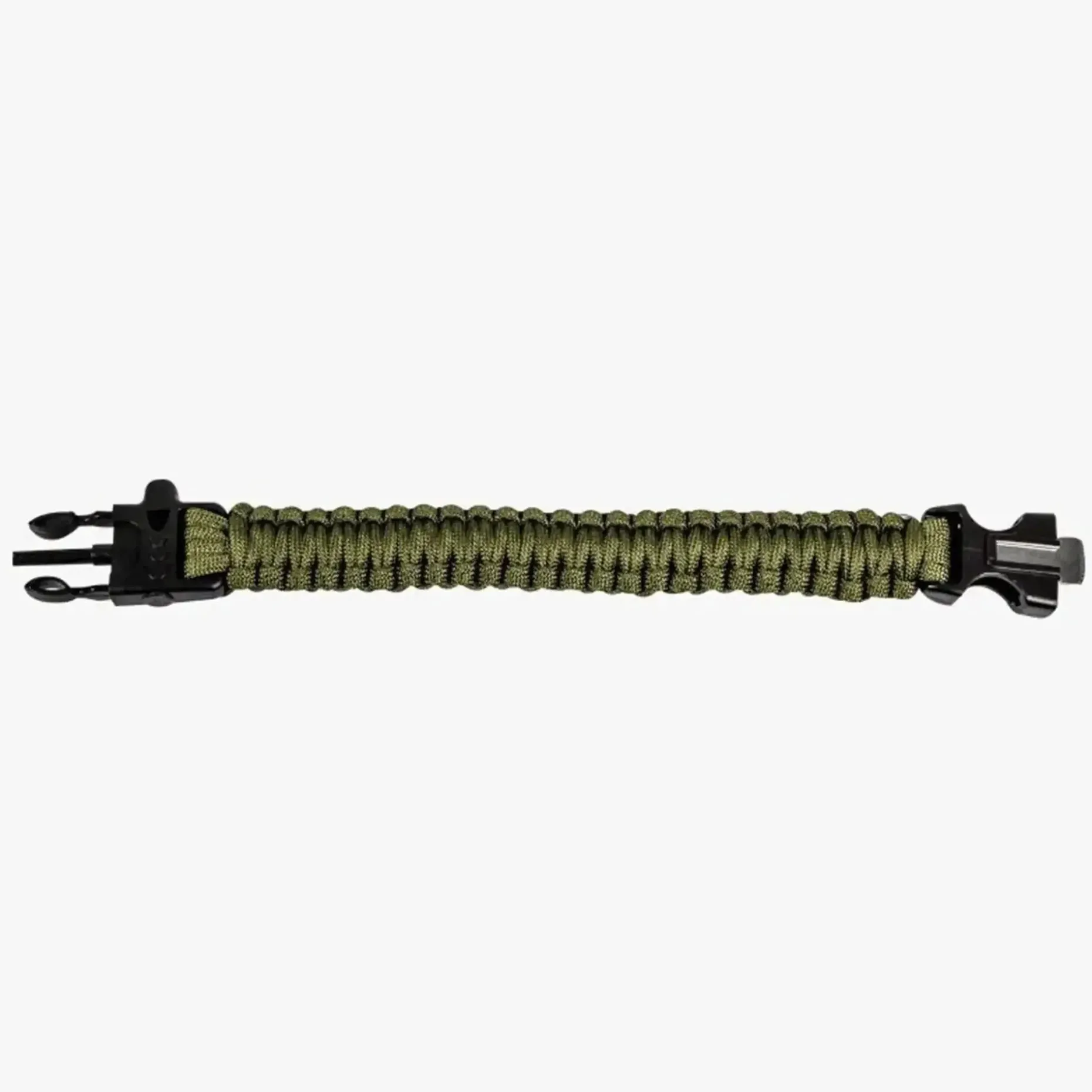 Im Verschluss integriert sind ein Feuerstarter mit Feuerstahl und Zündstahl sowie eine laute Notfallpfeife mit 100 dB. So kannst Du im Ernstfall nicht nur Feuer machen, sondern auch effektiv auf Dich aufmerksam machen. Die Kombination macht das Armband zu einem echten Multifunktionstool für Outdoor-Abenteuer – leicht am Handgelenk tragbar, immer griffbereit.
