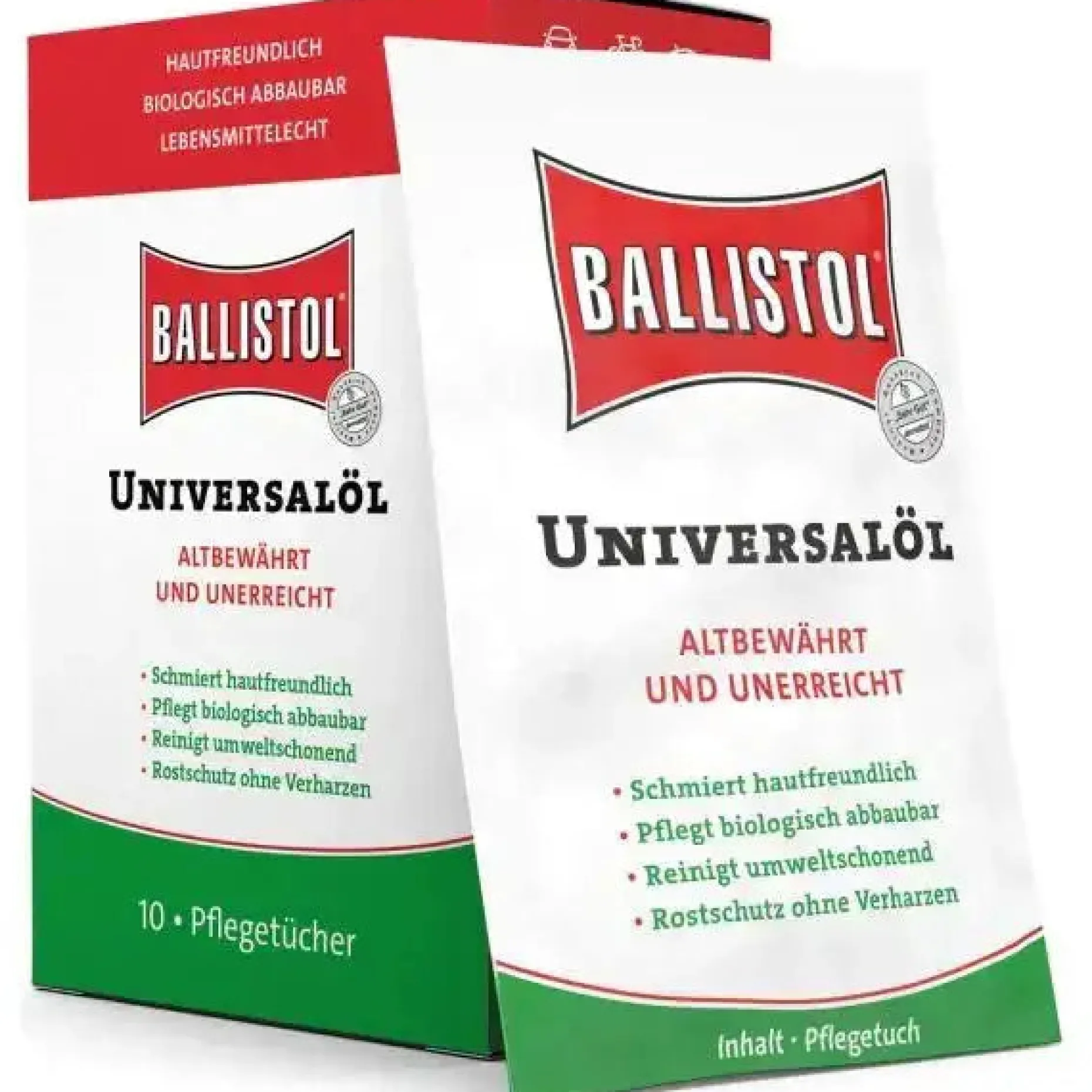 - Ballistol-Öl bereits in den Pflegetüchern integriert