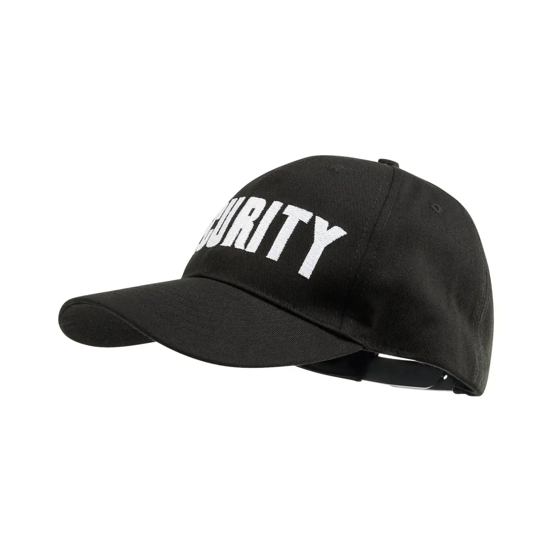 Die Brandit Cap Security mit gesticktem Security-Schriftzug überzeugt mit hochwertiger Verarbeitung. Der Kunststoffverschluss lässt sich an verschiedene Kopfgrößen anpassen und sorgt somit für individuellen Tragekomfort. Die Lüftungslöcher auf der Oberseite garantieren eine angenehme Atmungsaktivität.