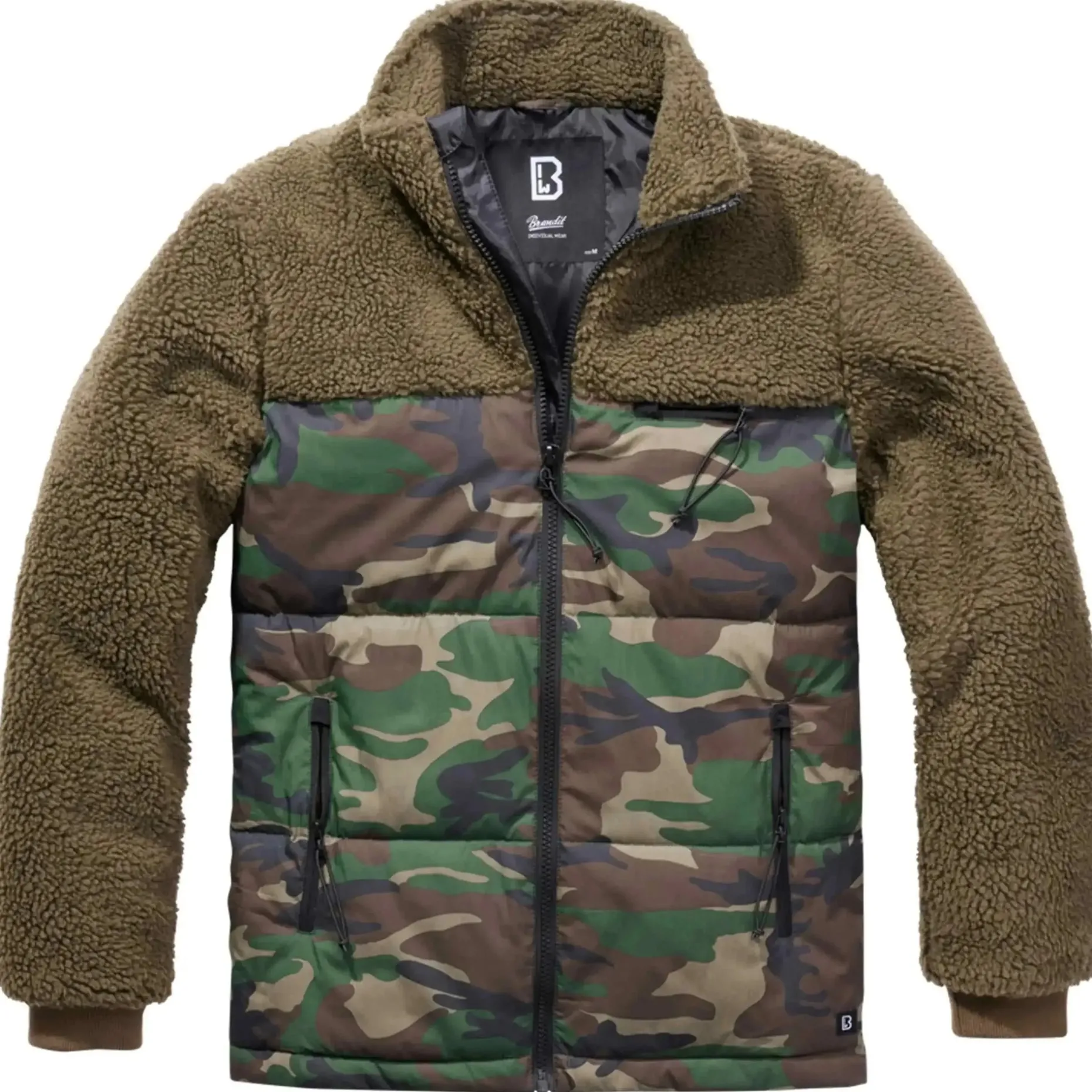 Die Brandit Jacke Jackson Teddyfleece mit geradem Schnitt überzeugt mit einem durchdachten Materialmix aus Fleece und Mischgewebe. Daraus ergibt sich eine sehr gute Isolationsleistung. In einer Brusttasche mit Reverse-Reißverschluss, zwei seitlichen Einschubtaschen mit Reverse-Reißverschluss und einer Innentasche mit Klettverschluss können Sie persönliche Gegenstände und kleine Ausrüstung problemlos verstauen. Alle Zipper sind mit einer Zughilfe ausgestattet. Der hochwertige Mittelreißverschluss mit Kinnschutz schützt Sie vor Wind. Die abtrennbare, wattierte Kapuze mit Kordelzug und Kordelstoppern und die elastischen Rippbündchen an den Ärmelabschlüssen runden die praktische Jacke ab.