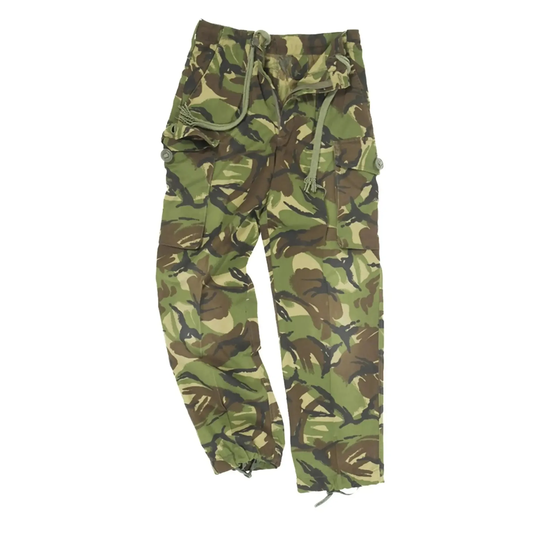 Britische Feldhose in gebrauchtem Zustand. Dank robustem Mischgewebe ist die Hose ideal für jede Outdoor-Aktivität oder als Arbeitshose geeignet. Sie verfügt über 2 Einschubtaschen, 2 Pattentaschen an den Oberschenkeln mit Knopfverschluss sowie einen Kordelzug am Saum und an den Beinabschlüssen.