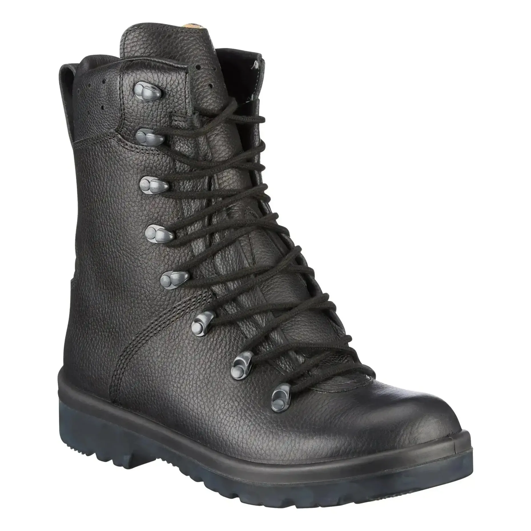 Die rutschfeste, antistatische Gummischalensohle in klebegezwickter Ausführung garantiert sicheren Halt auf verschiedensten Untergründen. Dank der öl- und benzinbeständigen Eigenschaften eignet sich der Stiefel ideal für den dienstlichen Einsatz, Outdoor-Aktivitäten oder anspruchsvolle Wanderungen. Mit rund 1600 g pro Paar ist der BW Kampfstiefel ein zuverlässiger, langlebiger Begleiter – neuwertig und ohne Defekte, teils mit überarbeiteten Sohlen.