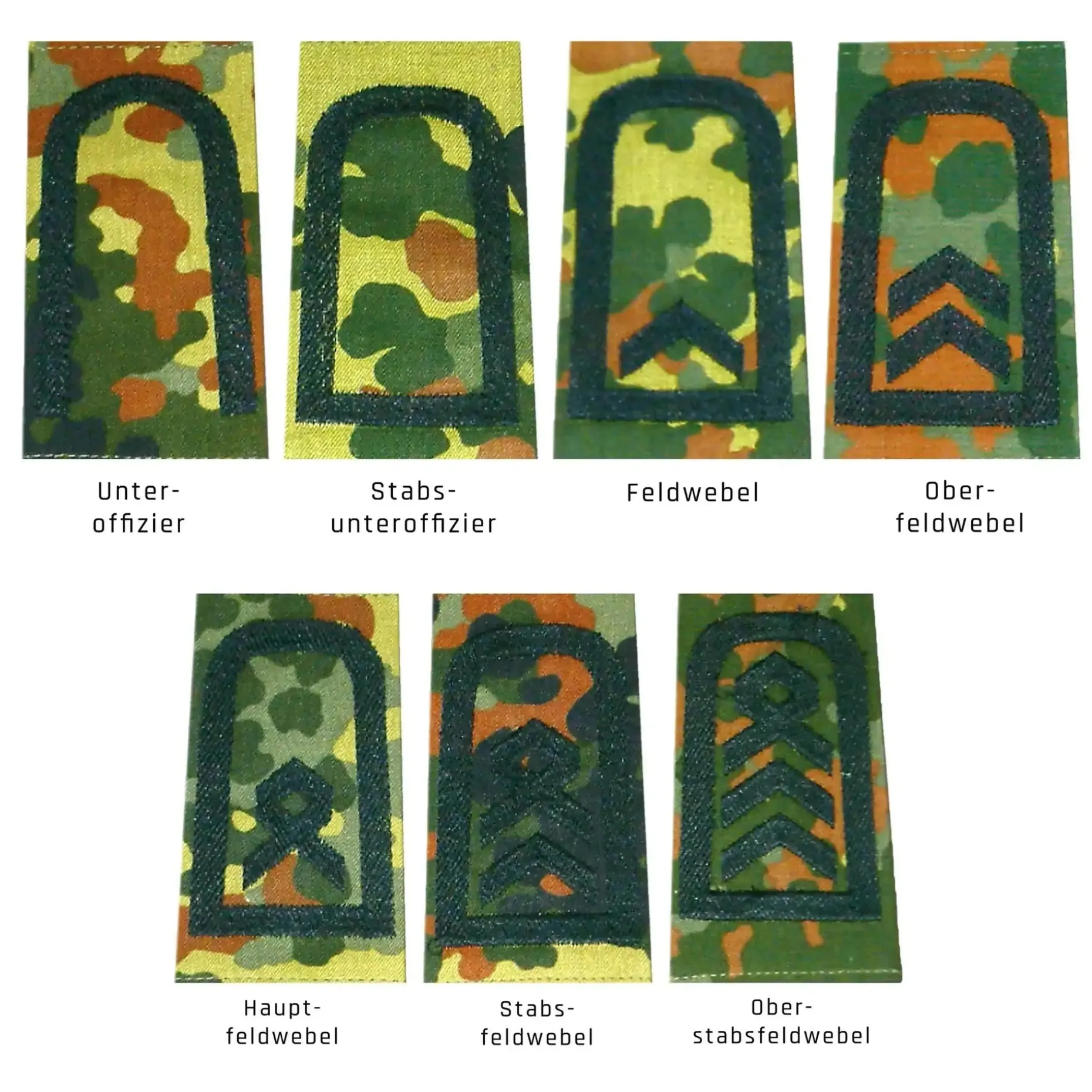 Die Bundeswehr Rangabzeichen sind aus strapazierfähigem Material gefertigt und bieten eine einfache Befestigungsmöglichkeit an der Uniformjacke. Von Unteroffizier bis General kann mit den Schulterschlaufen jeder Dienstgrad präzise dargestellt werden.