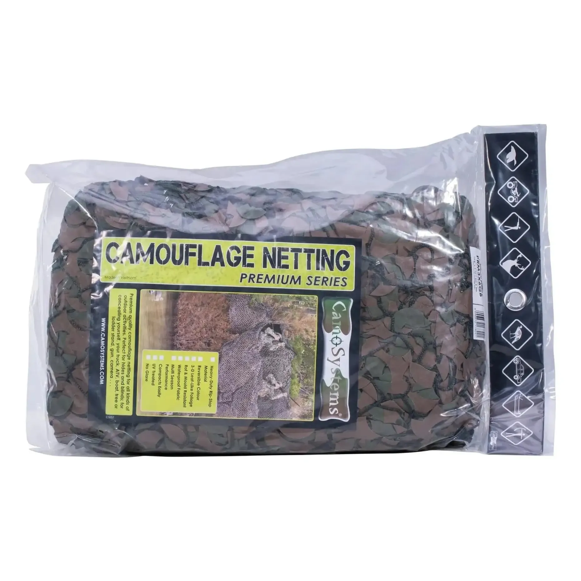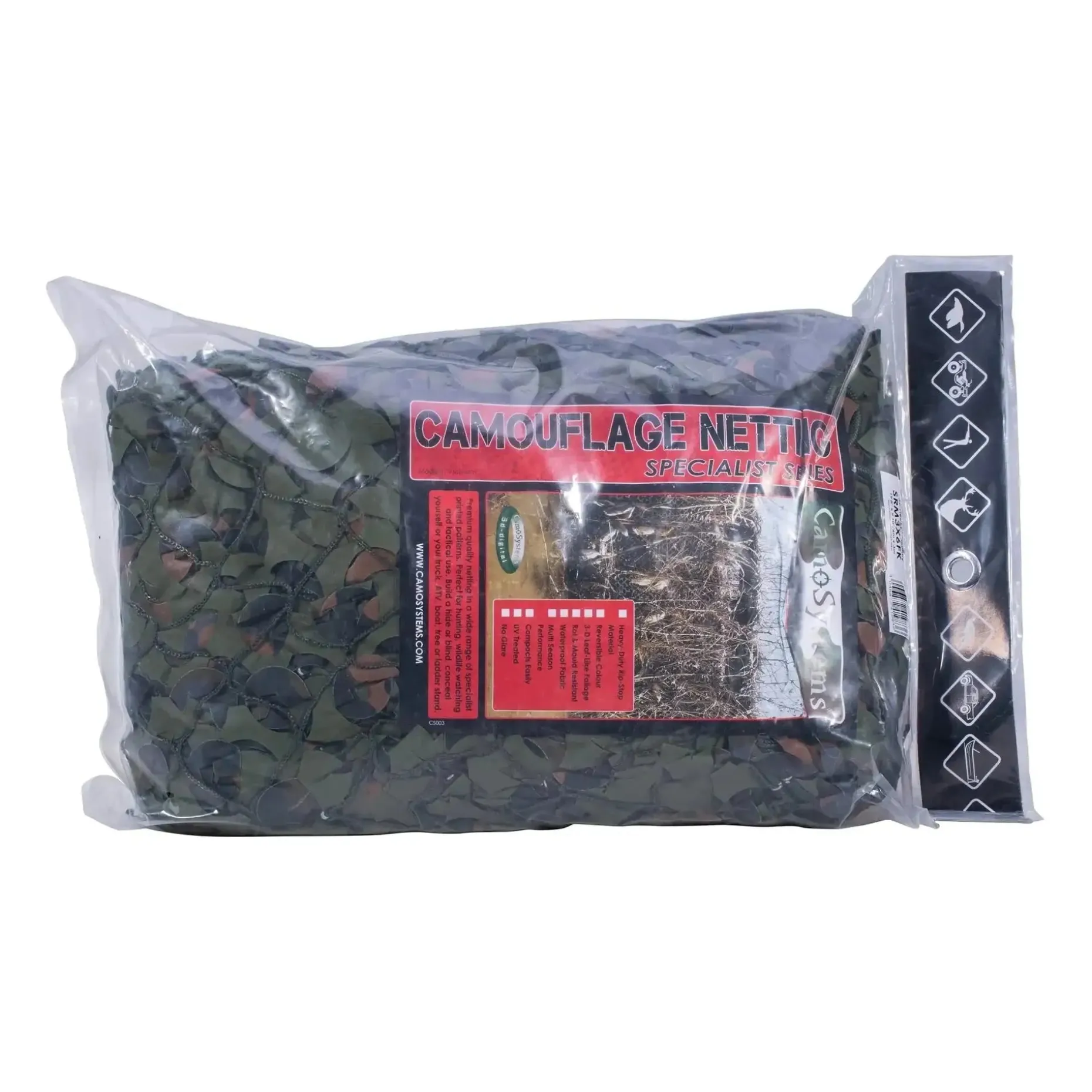 Das Tarnnetz im 3D Design ist wendbar von olivgrün nach braun und daher in verschiedenen Regionen und Jahreszeiten verwendbar. Das reißfeste Polyestermaterial ist wasser- und pilzresistent und kann problemlos dauerhaft im Freien verwendet werden. Das Tarnmuster lässt die Konturen verschwinden und löst die Silhouette gut auf. Die Leichtversion wurde hier auf ein robustes Trägermaterial bestehend aus einem kunststoffummanteltem Netzgewebe befestigt. Daher ist dieses Netz speziell für extreme Anwendungen gedacht.