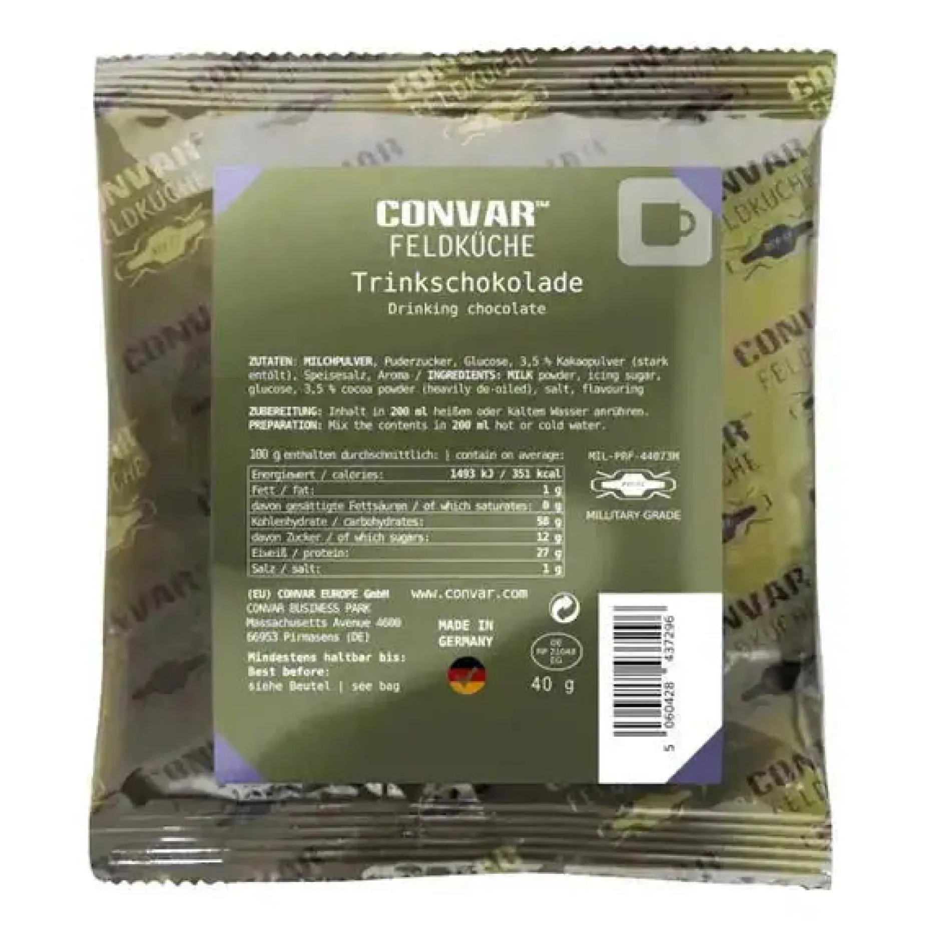 Die Convar Feldküche Trinkschokolade ist lange haltbares Lebensmittel, das sich sehr gut für den Notvorrat eignet.