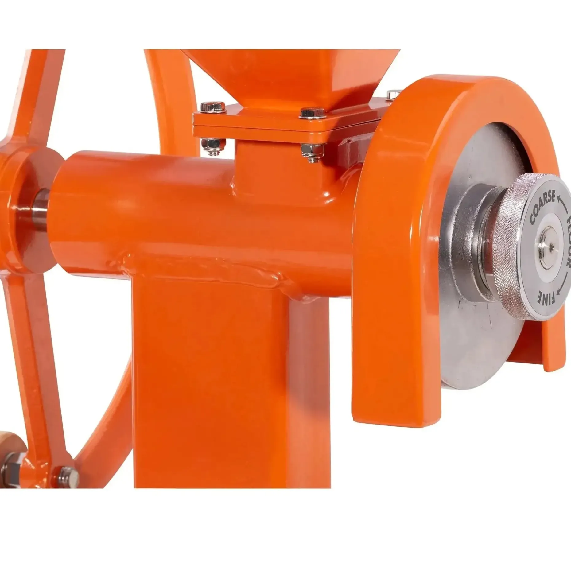 – Schritt 2: Einstellrad abschrauben, Unterlagsscheiben und vordere Mahlscheibe abnehmen.