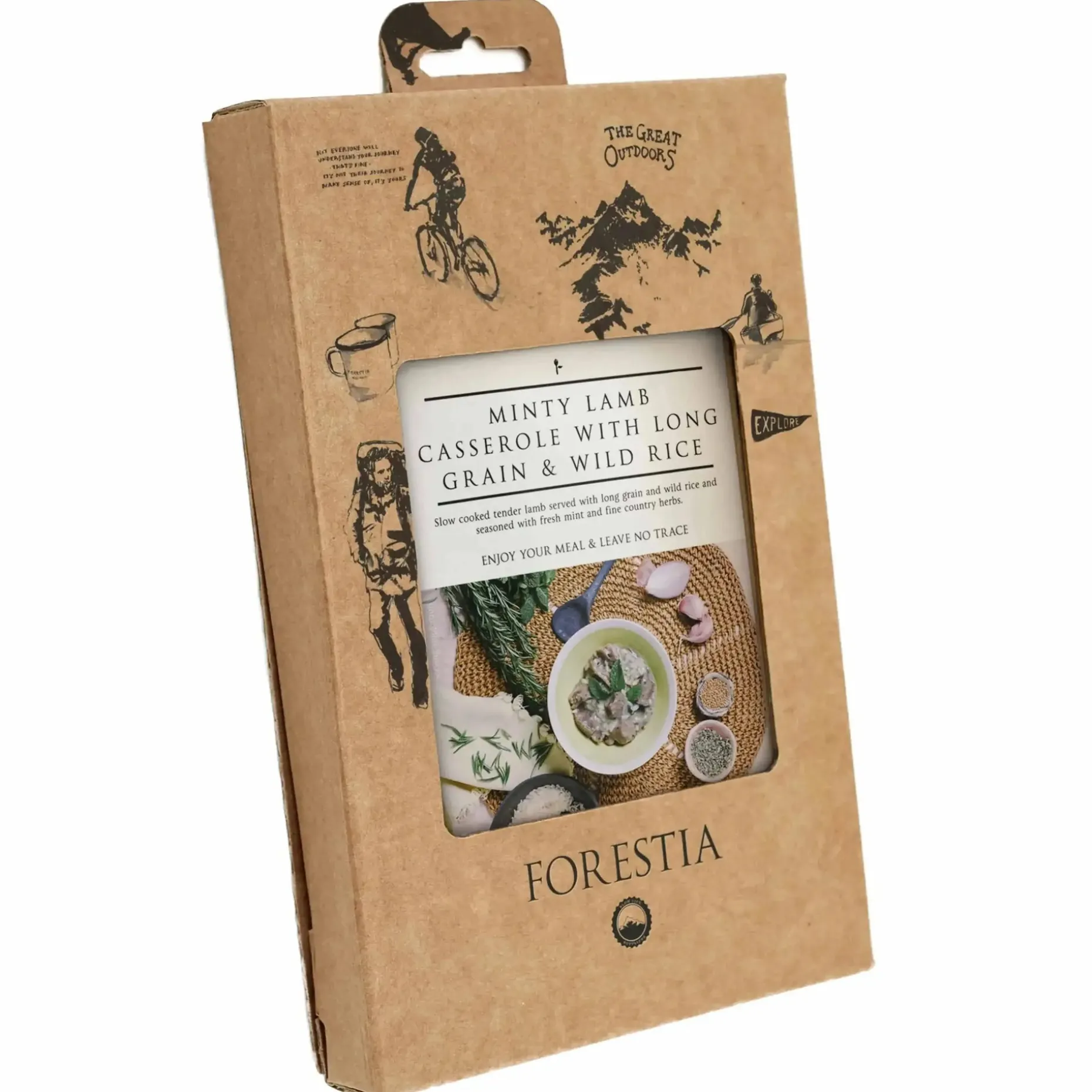 Der Forestia Lammeintopf mit Minze und Langkorn- und Wildreis erfüllt die Anforderungen an eine optimale Ernährung unter extremen Bedingungen. Die Mahlzeit ist nicht gefriergetrocknet und kann ohne Zufuhr von Flüssigkeit mit einem flammenlosen Heizbeutel erwärmt oder im Notfall sogar kalt verzehrt werden. Dadurch genießt Du selbst auf Outdoor-Ausflügen weiterhin hochwertige Gerichte, die sich schnell zubereiten lassen.