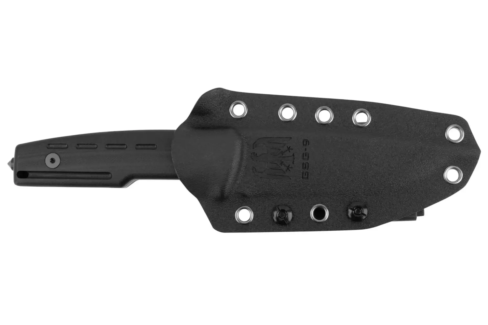 - Feststehende Klinge aus D2-Stahl mit hoher Schnitthaltigkeit (58–61 HRC)