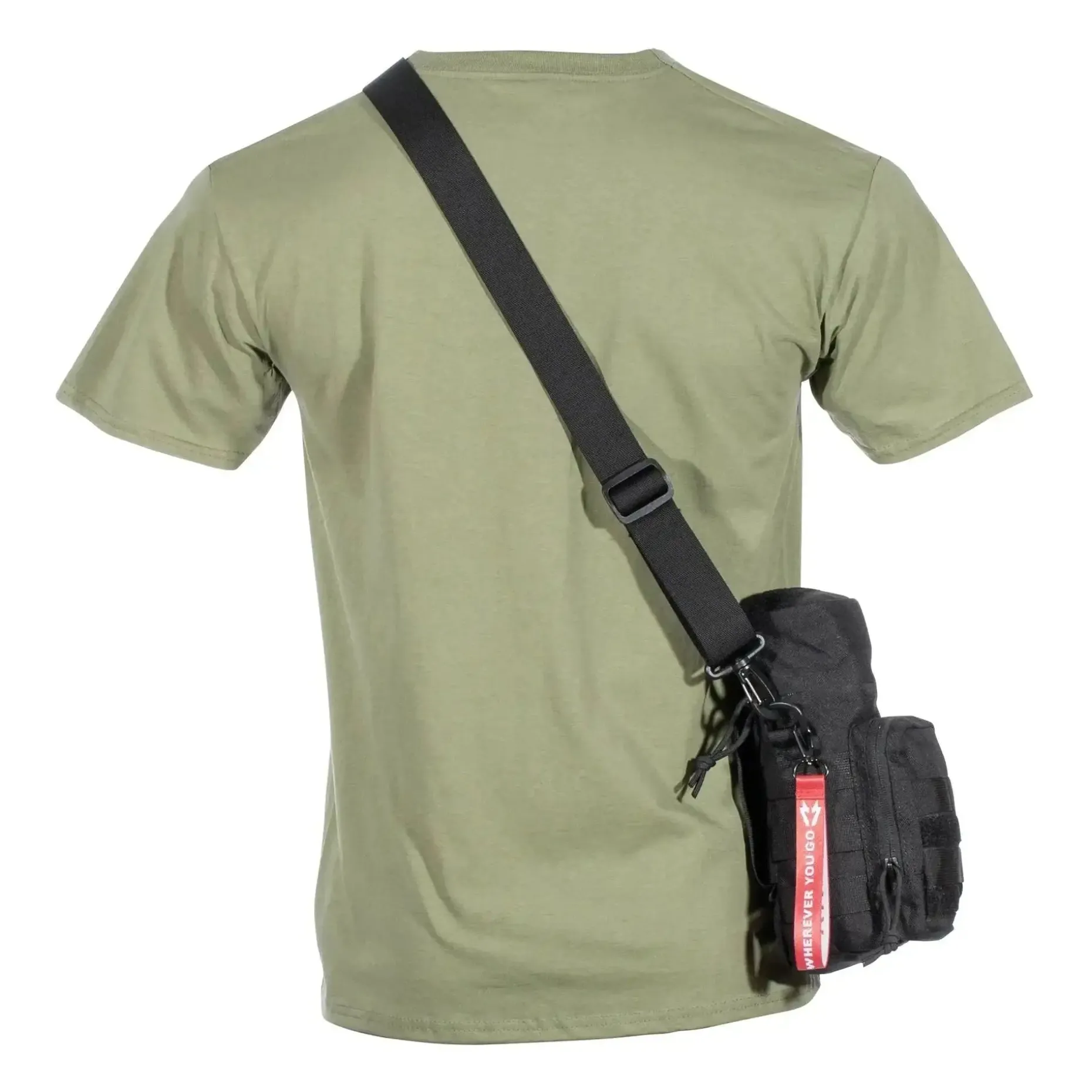 Das Beste: Der Tragegurt ist abnehmbar und die Bottle Bag passt an Deinen Rucksack oder andere Taschen mit Molle-Schlaufen. So hast Du Deine Trinkflasche immer griffbereit und sicher verstaut. Der Karabinerhaken ermöglicht eine Befestigung am Gürtel – perfekt für den schnellen Zugriff.
