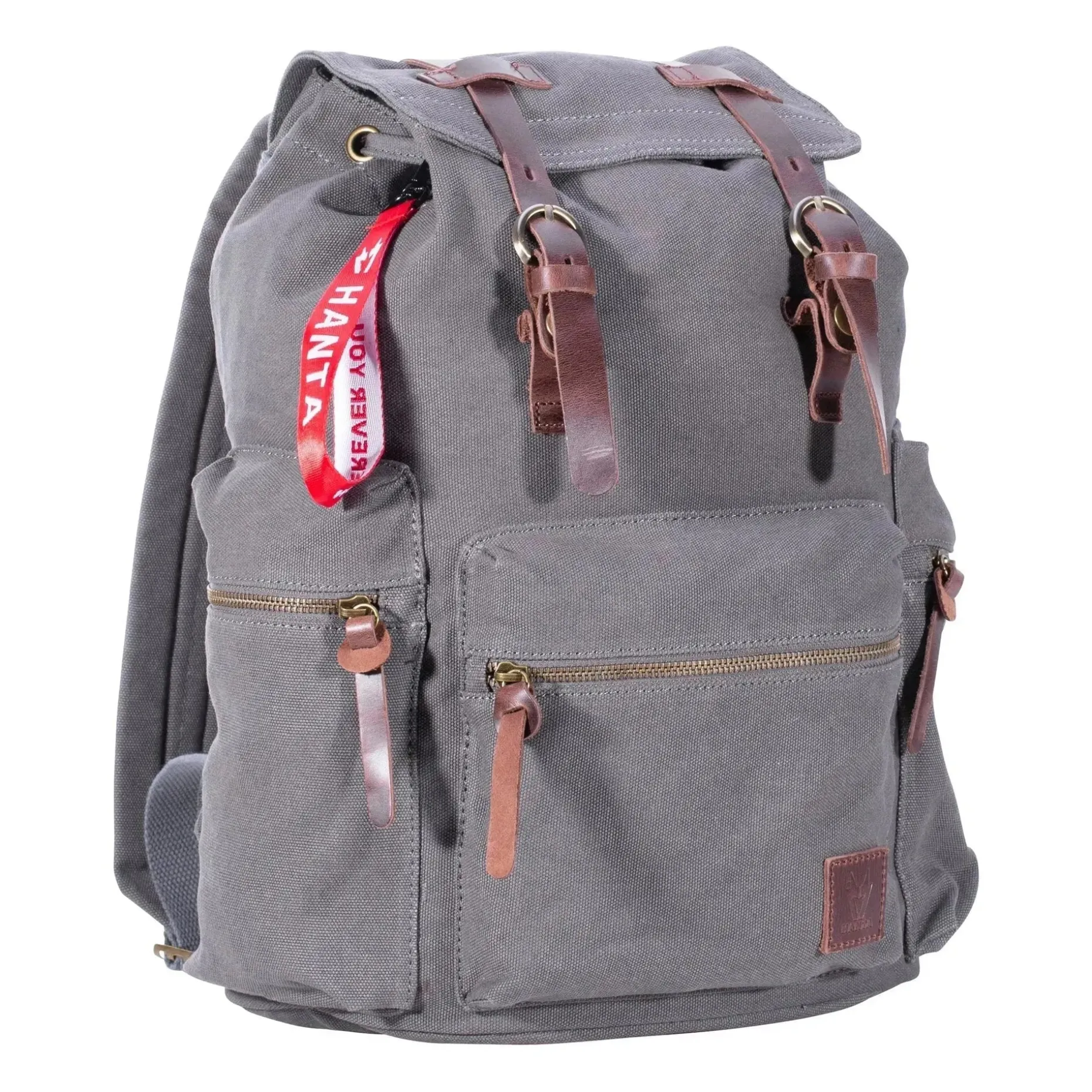 Ein weiteres Fach am Rucksackrücken sorgt dafür, dass Du wichtige Dokumente, Geld oder andere Dinge sicher verstauen kannst. Der Lederpatch mit eingearbeitetem Hanta-Logo verleiht Deinem Rucksack einen unauffälligen, aber stylischen Pluspunkt.