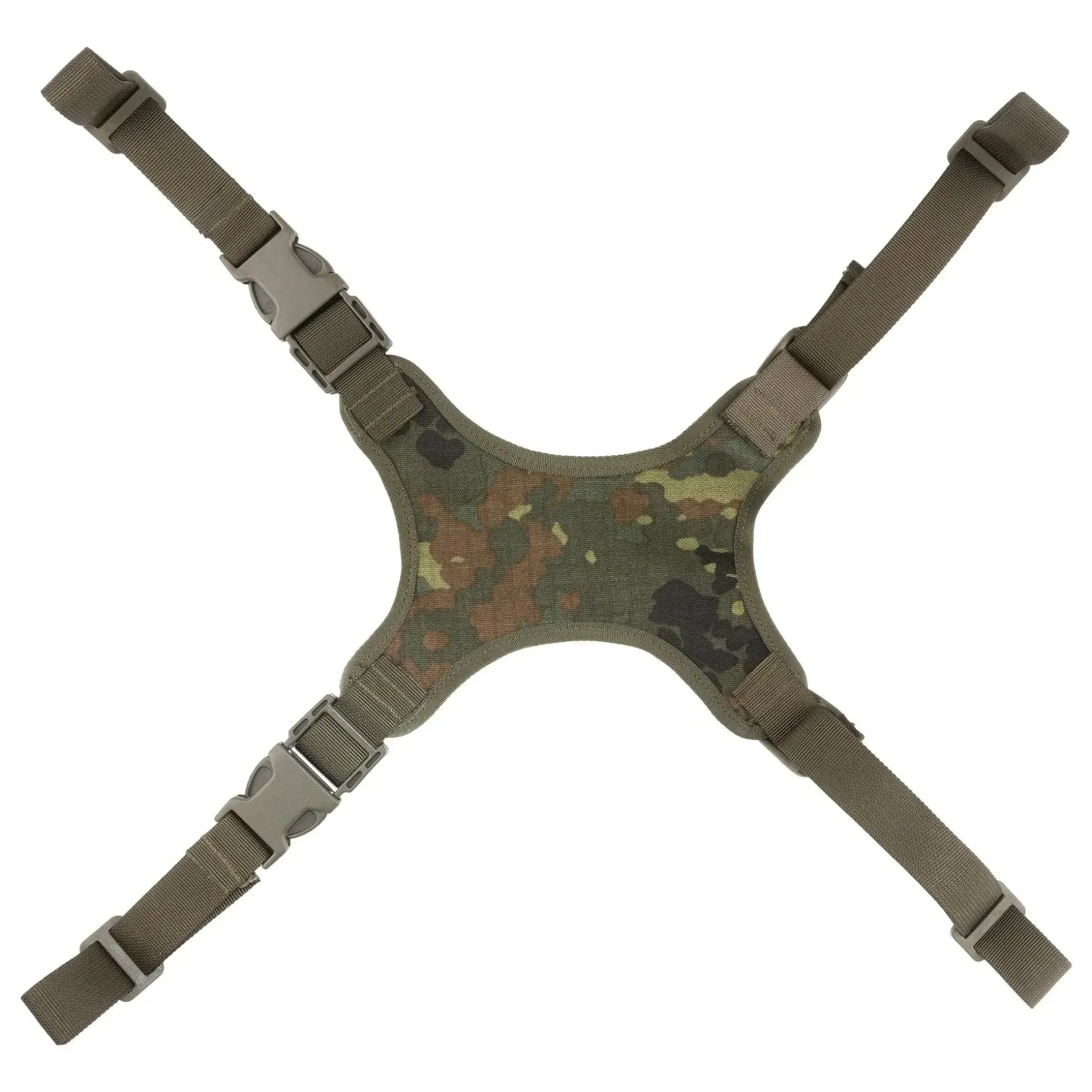 Diese Helmtragevorrichtung wurde speziell entwickelt, um Ausrüstung sicher und flexibel an Rucksäcken zu befestigen. Mit ihren vier verstellbaren Riemen und robusten Steckschließen eignet sie sich ideal zum sicheren Transport von Helmen. Darüber hinaus ermöglicht sie den vielseitigen Einsatz – Isomatten, Spezialausrüstung oder auch Panzerfaustladungen können stabil und griffbereit am Rucksack befestigt werden.