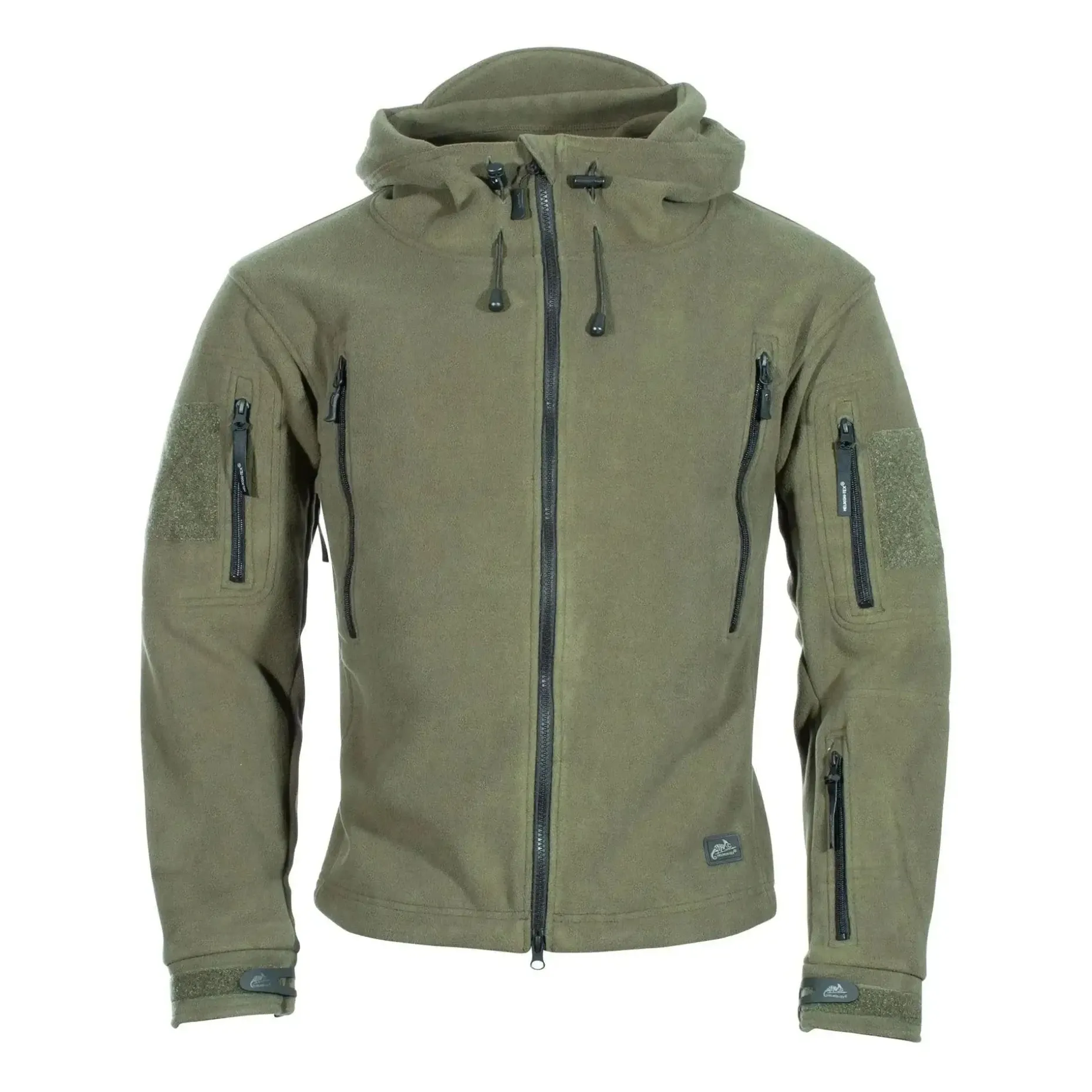 Die Helikon-Tex Jacke Patriot Double Fleece schwarz ist ideal für taktische Einsätze unter harten Wetterbedingungen. Die verstellbare Kapuze mit kurzem Schirm schützt bei Regen, ohne die Sicht einzuschränken. Neben den großen Reißverschluss-Brusttaschen mit Kabelöse und Organiser verfügt die Jacke über zwei Oberarmtaschen mit Klettfläche sowie eine Unterarmtasche links.