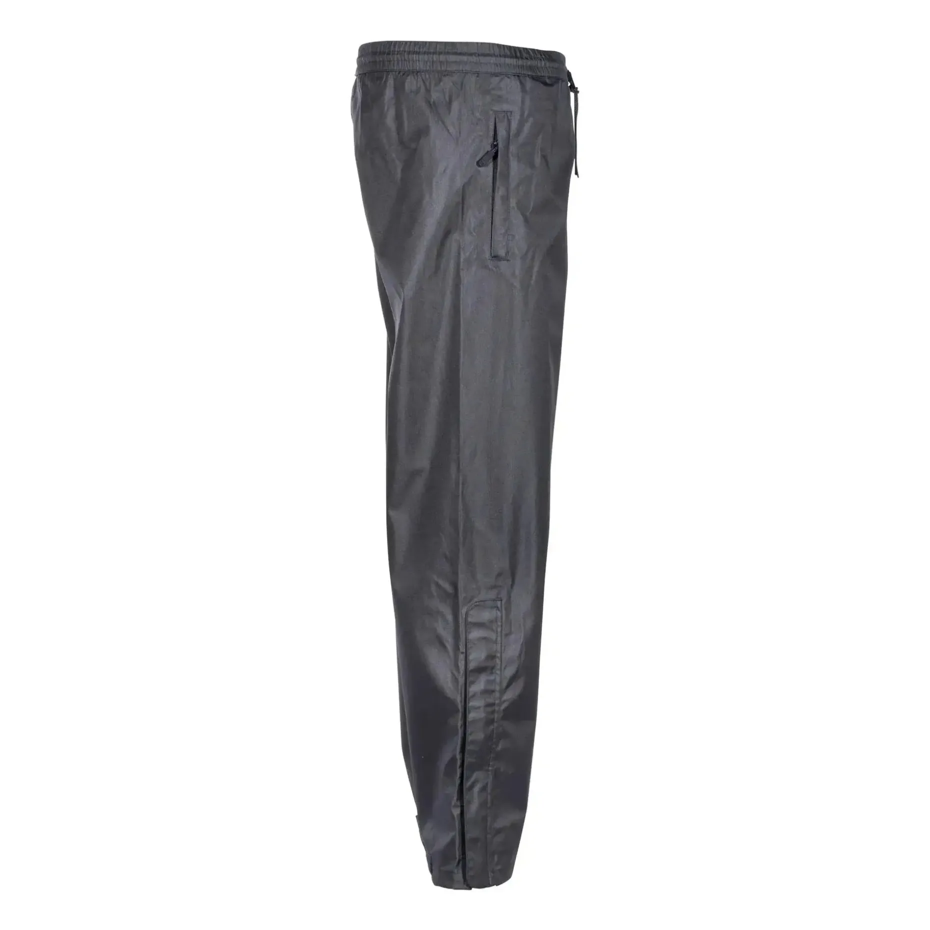 Eine robuste Allwetter-Hose aus 100% Polyester mit AB-TEX Trimax Membran (wasserdicht und atmungsaktiv), mit seitlichen Eingrifftaschen mit Reißverschluss, elastischem Bund, einstellbarer Fußgelenkweite per Druckknopf, Stiefelreißverschlüssen mit Sturmklappen und versiegelten Nähten.
