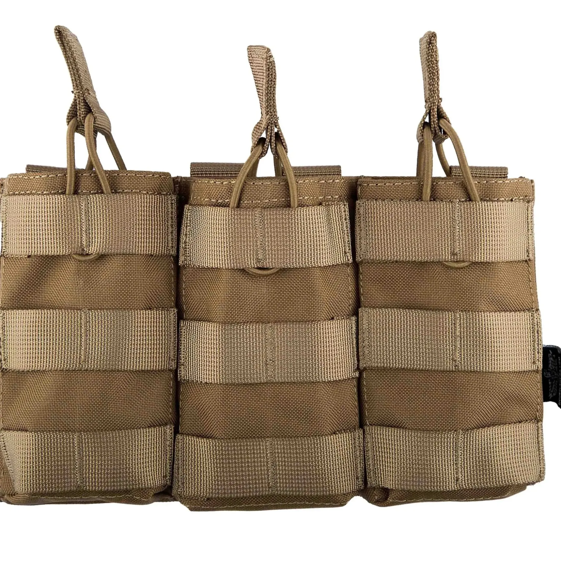 Diese klassische Invader Gear Magazintasche 5.56 Triple DA ist für alle gängigen Magazine des Kalibers 5.56 mm geeignet. Sie fasst maximal drei Magazine und sichert diese mithilfe von Bungeeschlingen, die auf der Vorder- und Rückseite befestigt sind. Einfach durch das Molle-System befestigt, hält diese Tasche Deine Magazine in nahezu jeder Situation an der korrekten Position und erleichtert Dir den Magazinwechsel. Auf der Vorderseite besteht zudem die Möglichkeit, weitere Molle-Pouches, wie z.B. Pistolenmagazintaschen, zu befestigen. Das verwendete Material ist extrem widerstandsfähig und hochwertig verarbeitet, was dieses Produkt sehr langlebig macht.
