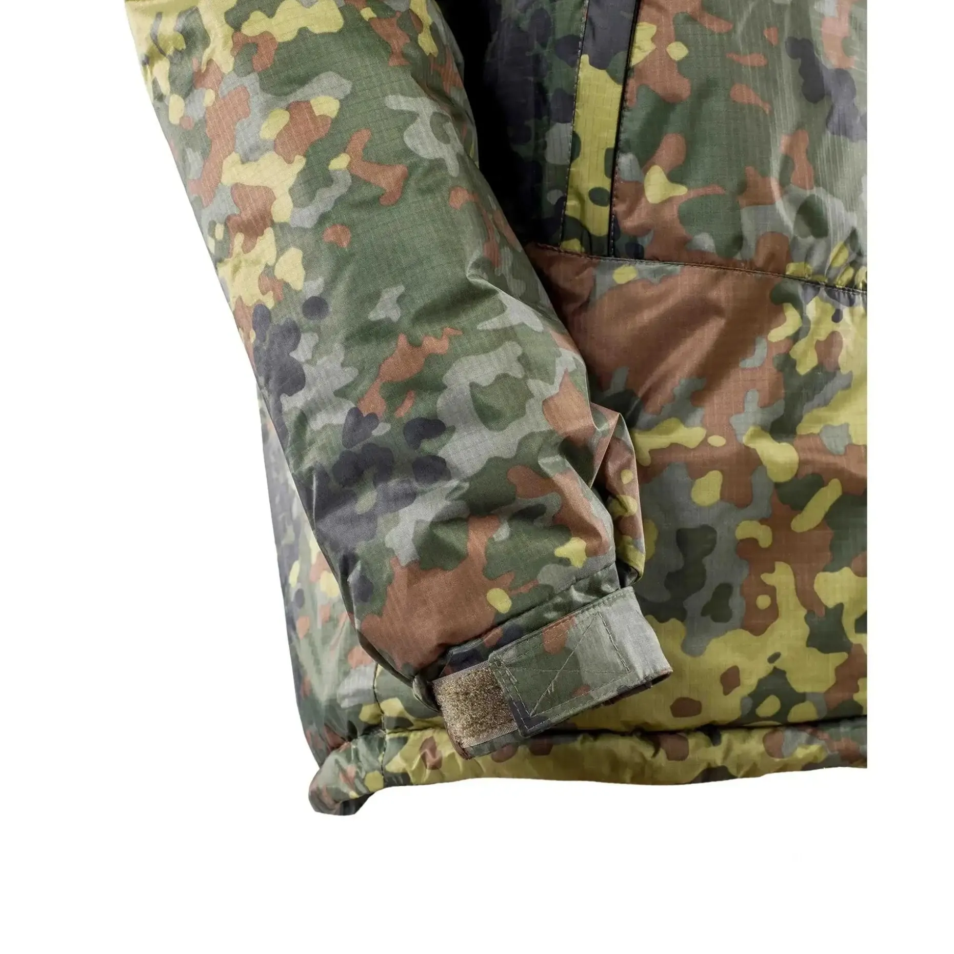 Die Oberarmtaschen sind ebenfalls mit YKK-Reißverschlüssen versehen und verfügen über ein innenliegendes elastisches Gummiband sowie eine Befestigungsschlaufe. Für deine Abzeichen gibt es auf beiden Ärmeln eine Flauschfläche (9 x 14 cm). Im Lieferumfang sind außerdem zwei deutsche Hoheitsabzeichen mit Klett enthalten. Der Bund kann mithilfe eines zweifach einstellbaren und elastischen Kordelzugs perfektioniert werden.