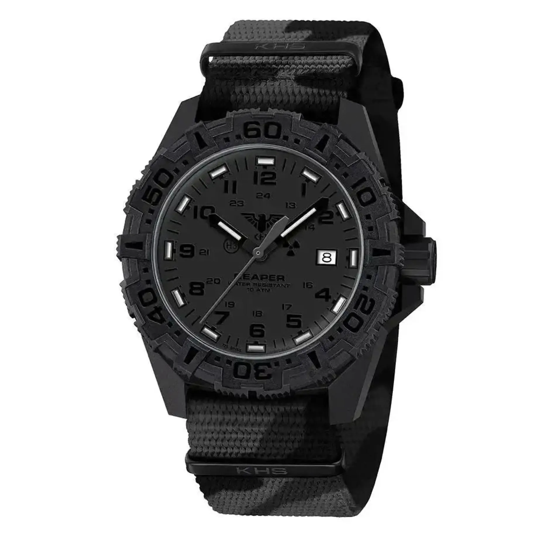 Die KHS Reaper MK II ist mit 14 Trigalights auf dem Zifferblatt ausgestattet, welches vom stoßfesten XENSATION Glas von Schott made in Germany geschützt wird.