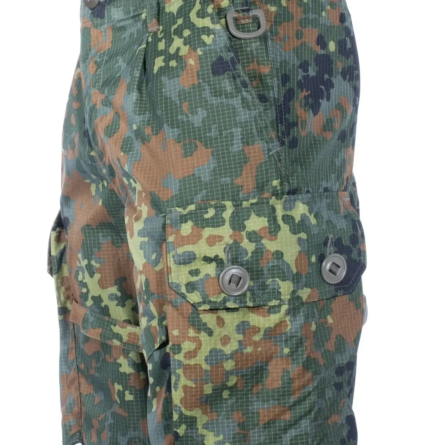 Mit Hosenträgerknöpfen, 50 mm breiten Gürtelschlaufen, seitlichen D-Ringen und Zugband im Hosensaum ist die Einsatzkampfhose optimal für modulare Ausrüstung vorbereitet. Für maximalen Tragekomfort wird das Tragen mit Hosenträgern empfohlen, da dies den Schrittbereich spürbar entlastet.