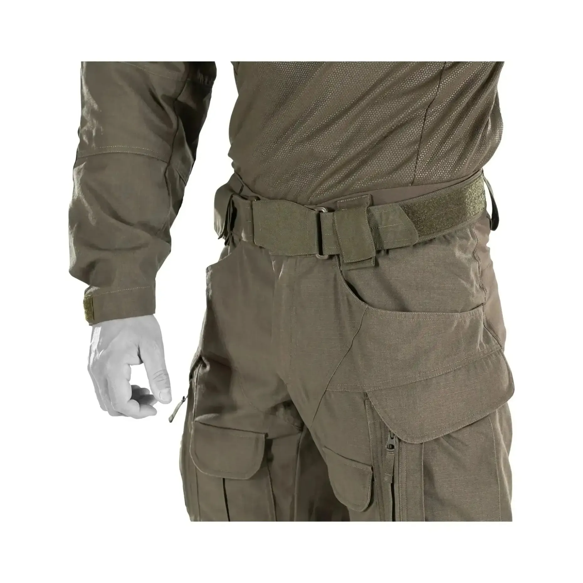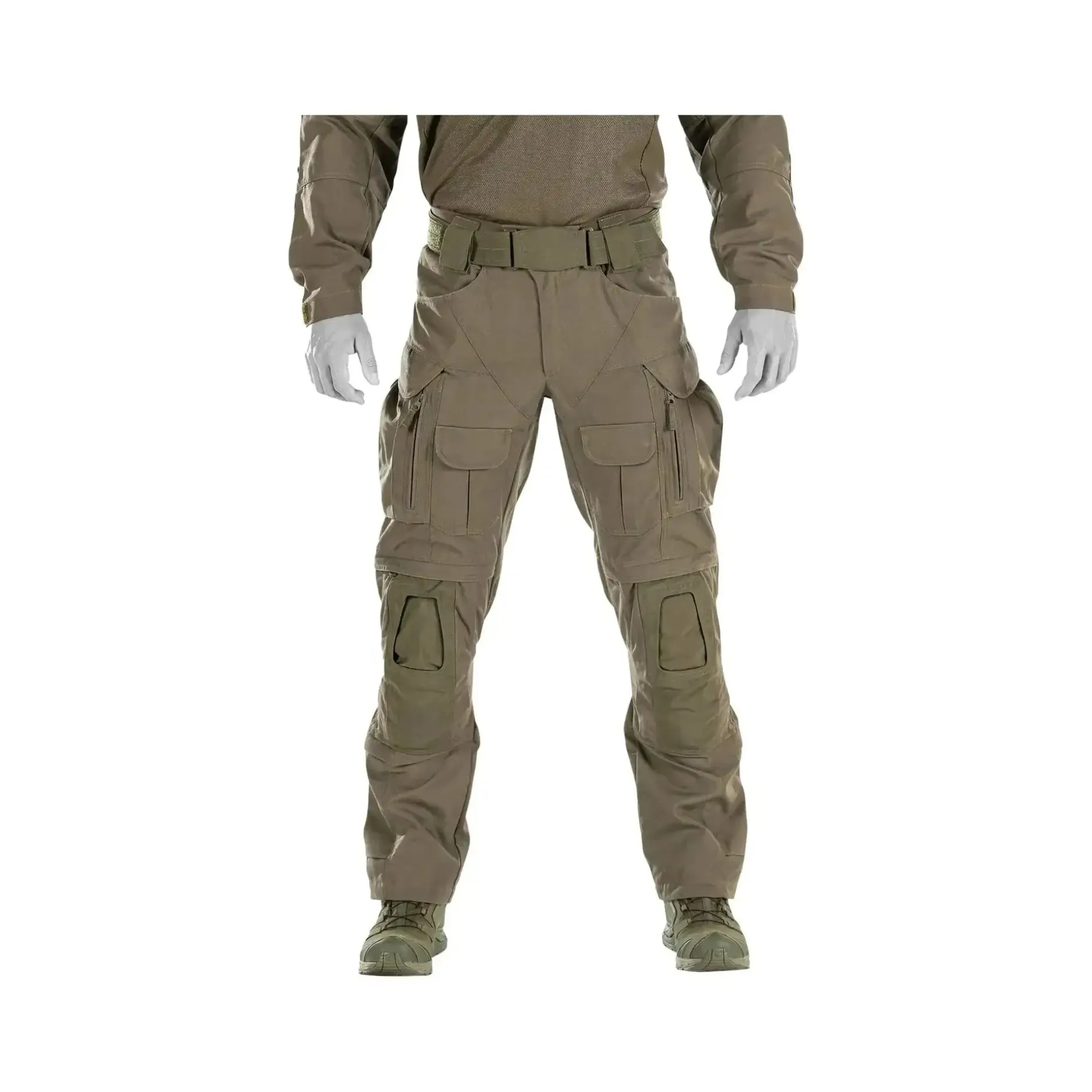 Ein herausragendes Alleinstellungsmerkmal dieser Hose ist das einzigartige Kniepolstersystem. Es ermöglicht die Verwendung von drei verschiedenen Kniepolstern (Crye, Arcteryx, UF PRO) und sorgt für eine stabile Positionierung. Zudem bietet es eine Höhen- und Weitenverstellung sowohl für das Knieschutzsystem als auch für den Kniebereich selbst.