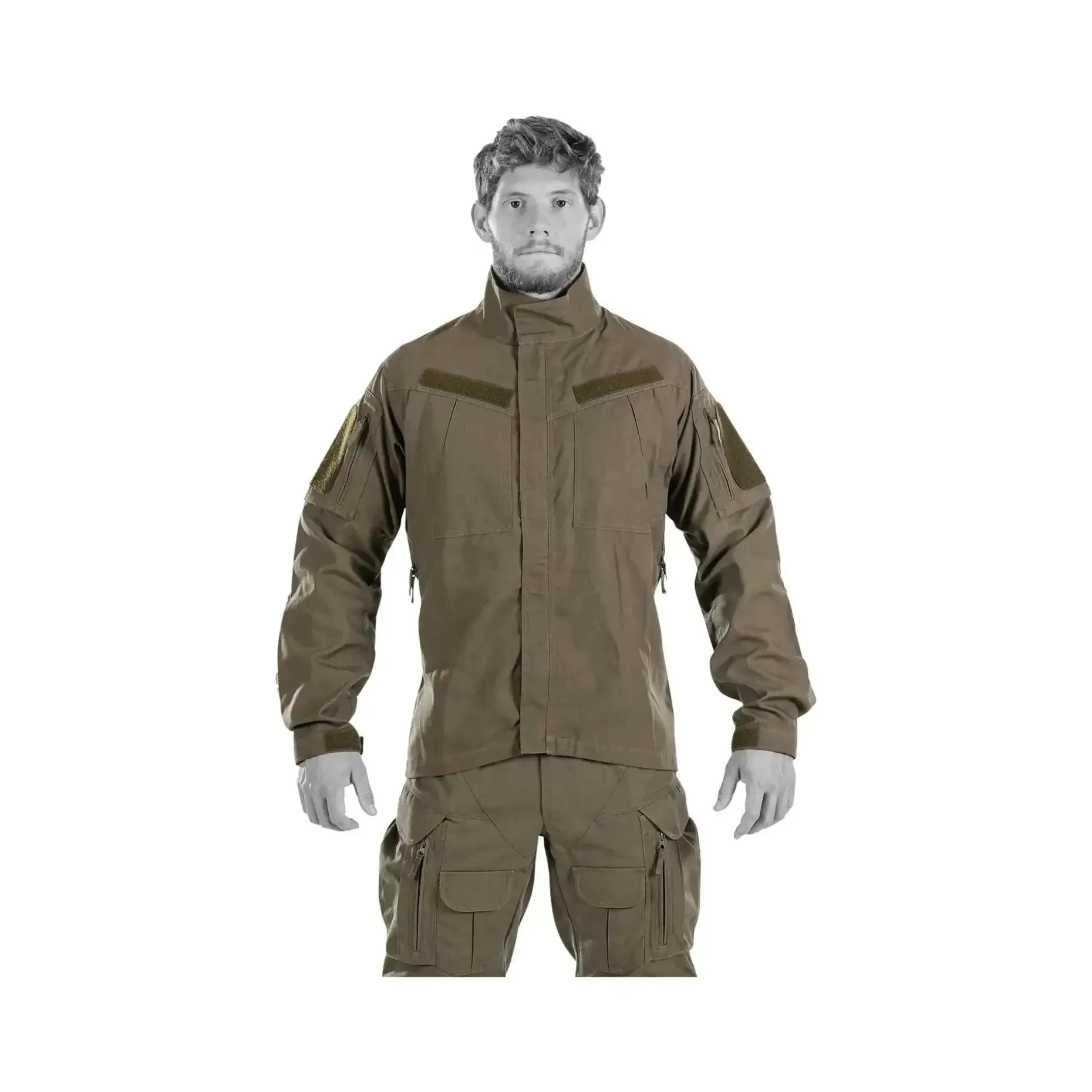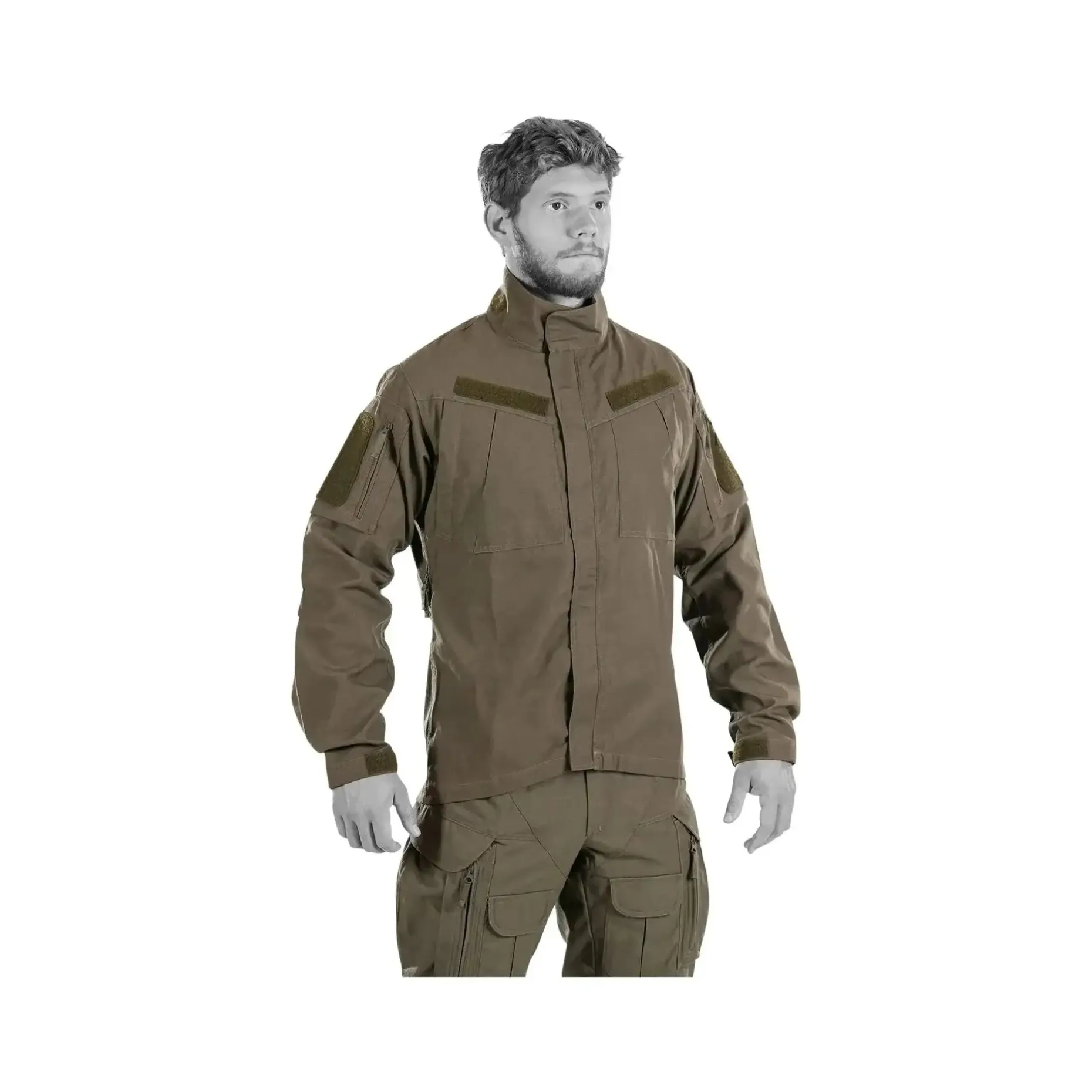 Mit zwei Brusttaschen mit Klett-Flausch-Verschluss und zwei Reißverschlusstaschen an den Ärmeln bietet die Bluse praktischen Stauraum. Aufgenähte Flauschflächen ermöglichen die Befestigung von Abzeichen, Patches oder Identifikationen. Der weiche Kragen mit Flauschflächen für eine Sturmhaube rundet das Design ab und erhöht die Funktionalität.