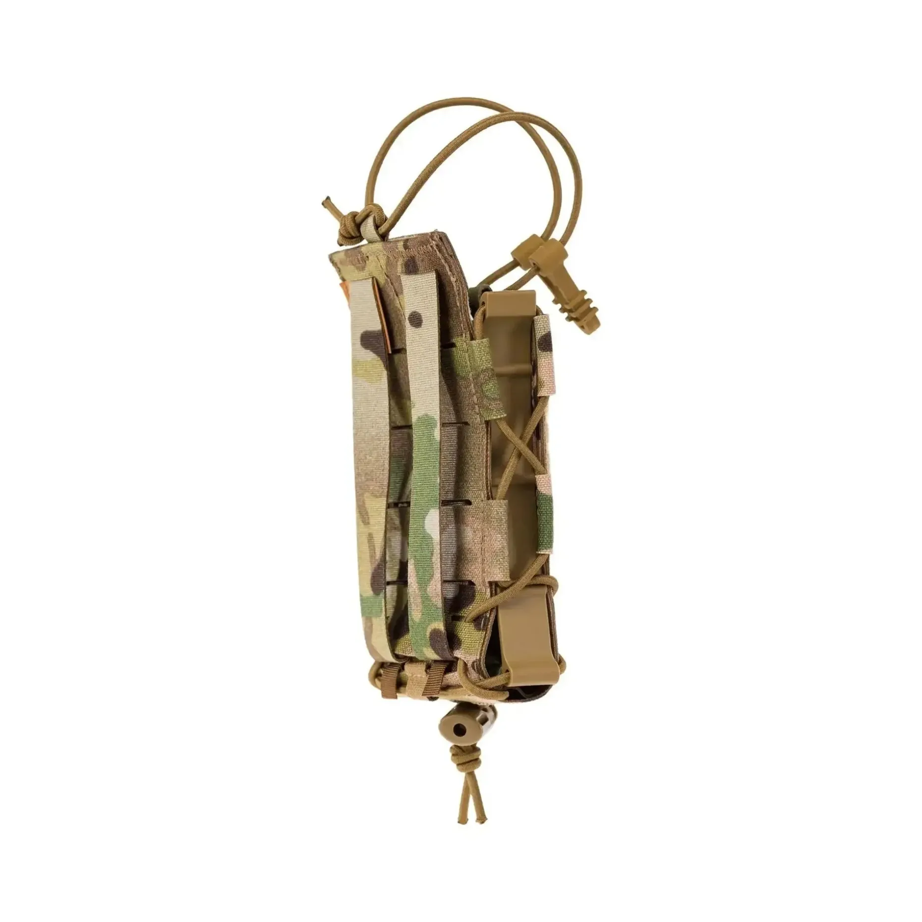 Die Befestigung erfolgt ganz einfach über Molle/PALS, sodass Du die Tasche flexibel an Deiner Ausrüstung befestigen kannst. Das innovative L-Bügel-Design in Kombination mit der einstellbaren Schnürung ermöglicht es Dir außerdem, die Seiten und den Boden der Tasche frei zu bewegen.