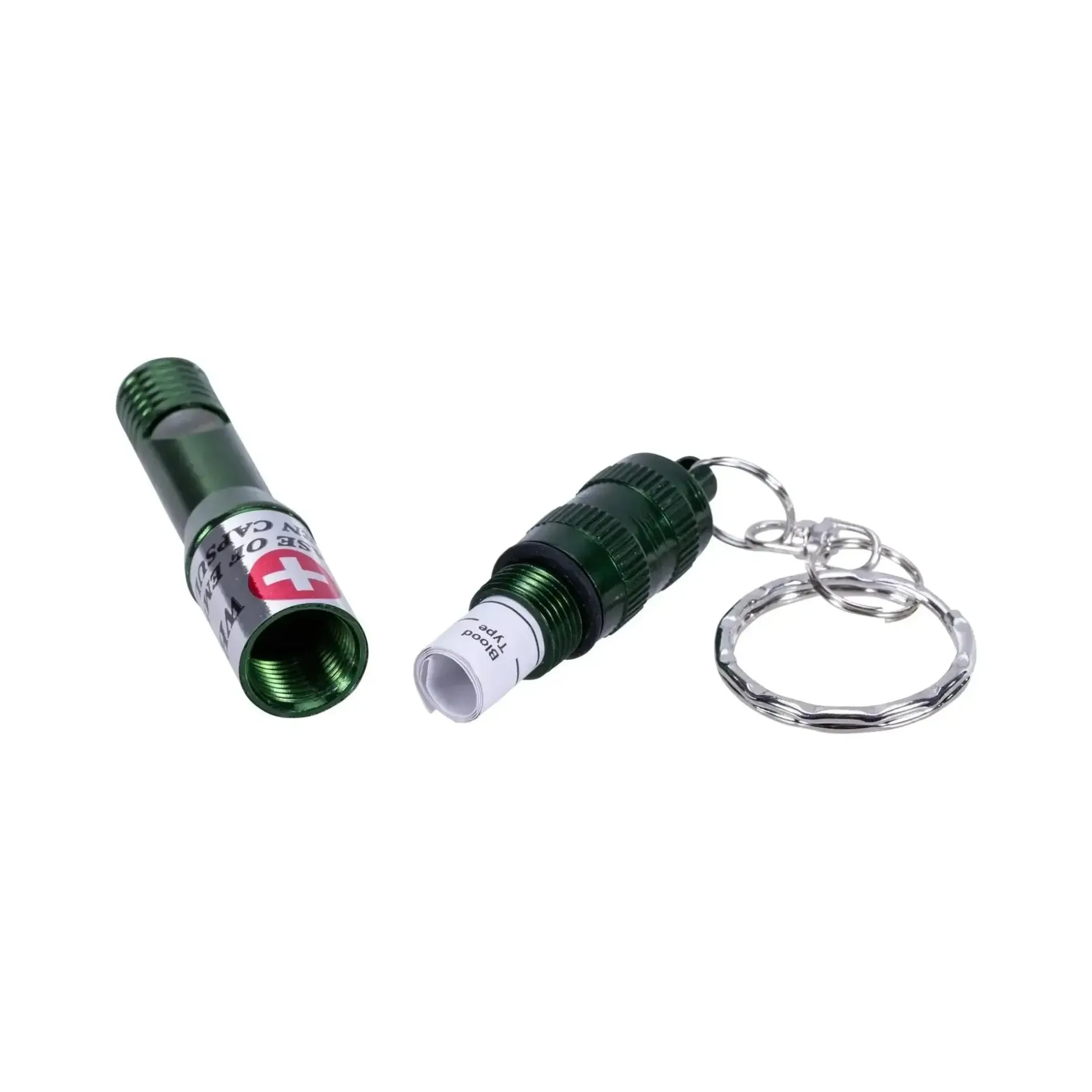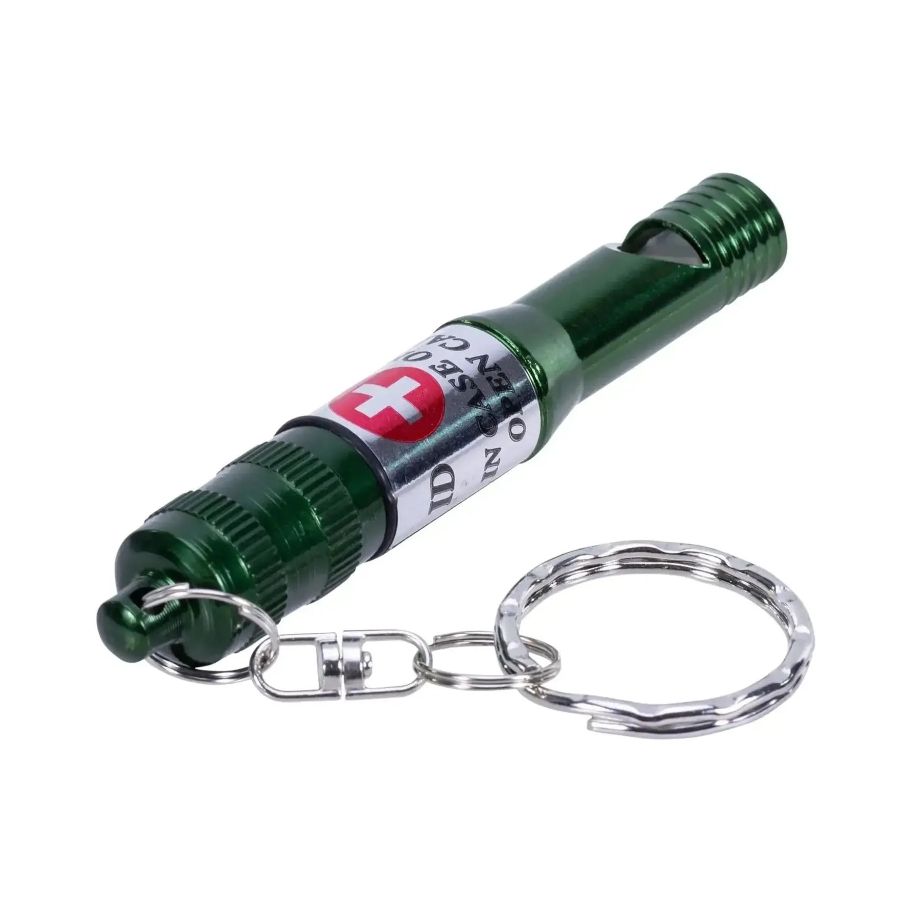 Die Signalpfeife enthält in einem wasserdichten verschraubbaren Innenfach einen Zettel, auf dem Sie Ihre persönlichen Notfall-, Identifikations- und Gesundheitsdaten eintragen können. Die Pfeife kann an einem Schlüsselring an den Schlüsselbund, Hosentasche oder Rucksack befestigt werden, sodass Sie die wichtigen Informationen stets bei sich tragen können.