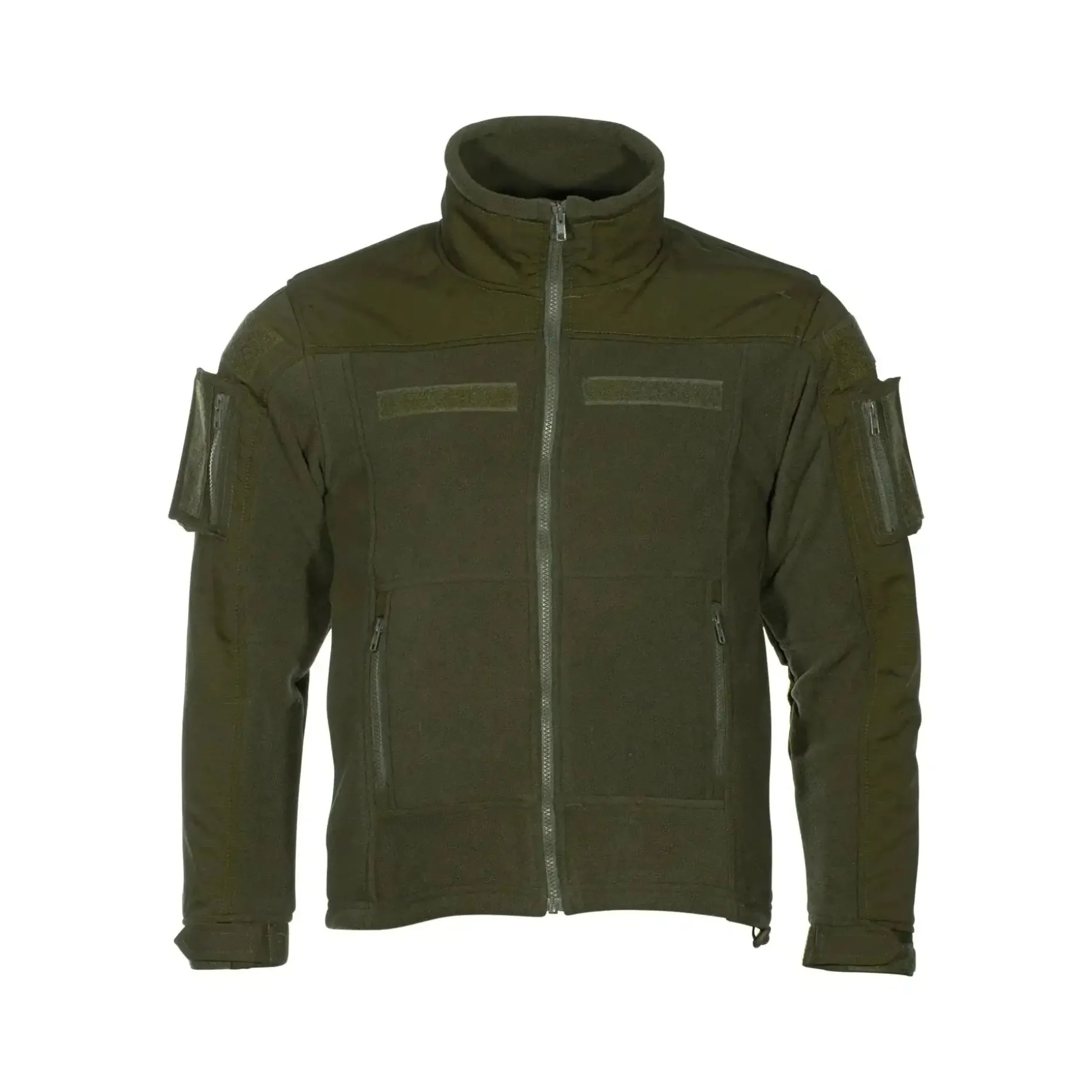 Diese robuste MFH Fleecejacke Combat verfügt über zwei vertikale Reißverschluss-Hüfttaschen, zwei aufgesetzte Ärmeltaschen mit Reißverschluss und Klettfläche für Patches oder Abzeichen. Auch auf Oberarm, Brust und im Nacken sind Klettflächen zum Anbringen von Namensbändern etc.