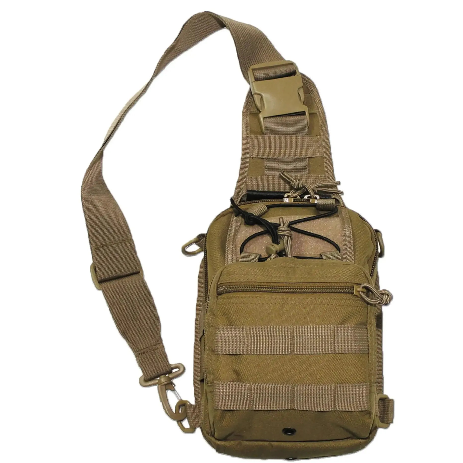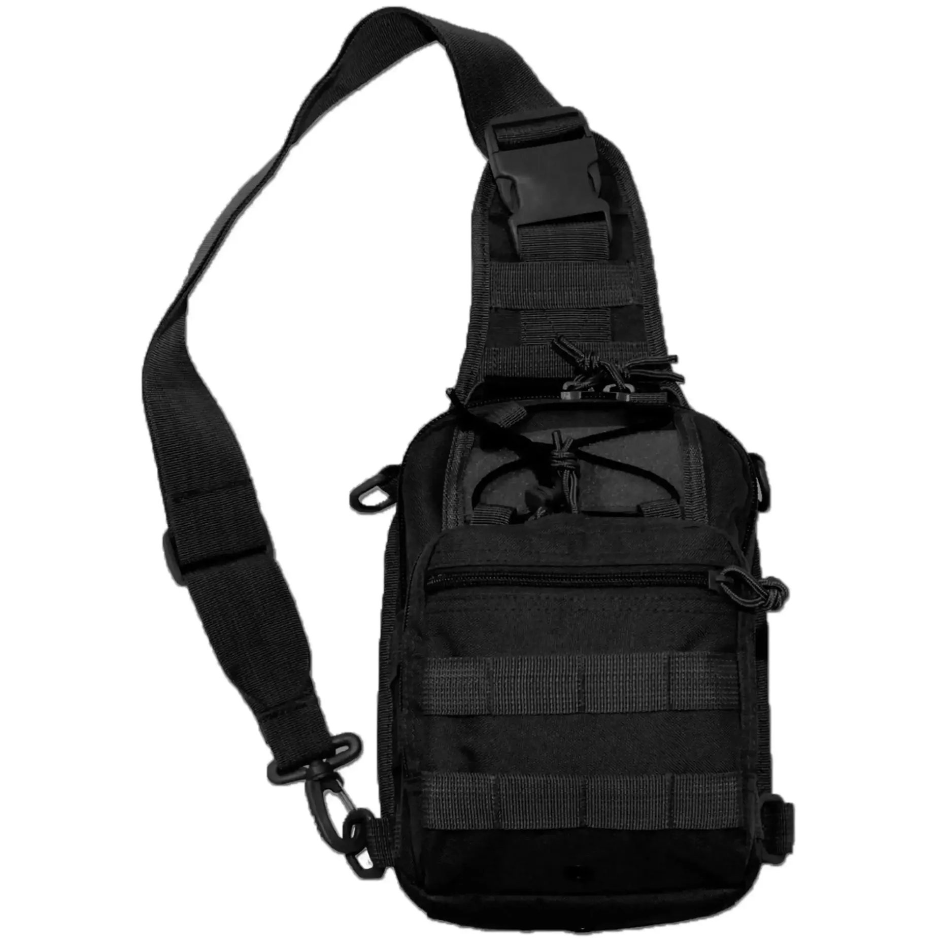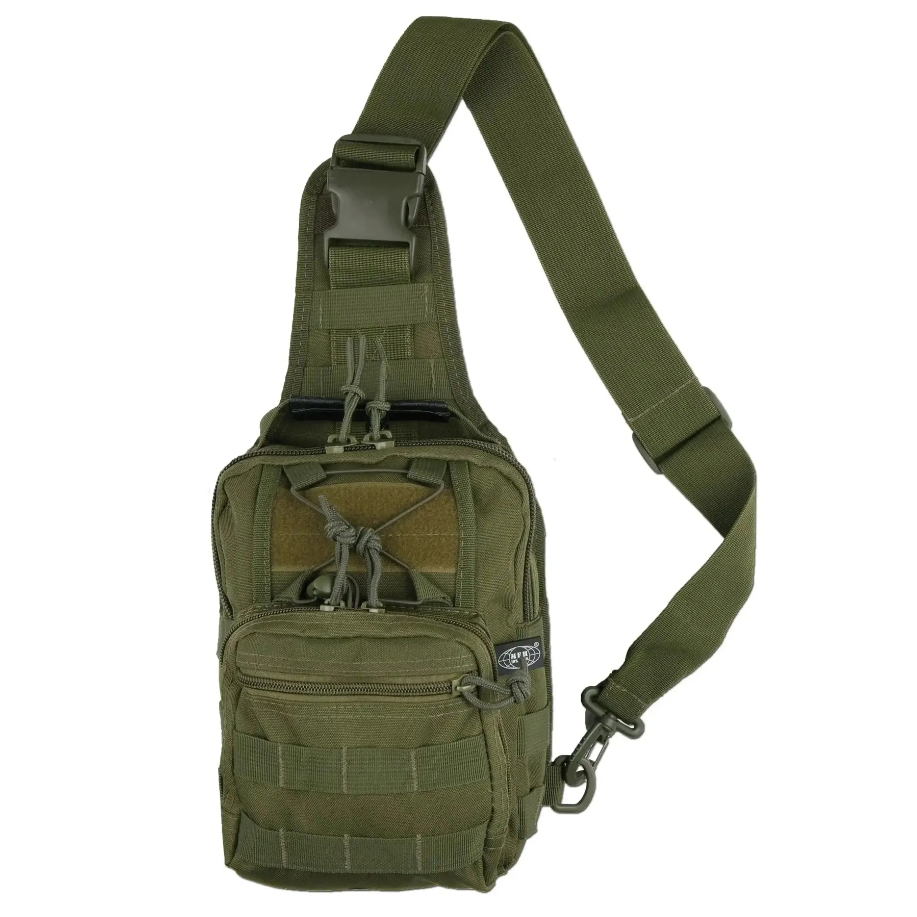Seitlich und auf der Fronttasche befinden sich Molle-Aufnahmen für die Befestigung von weiteren Ausrüstungsgegenständen.