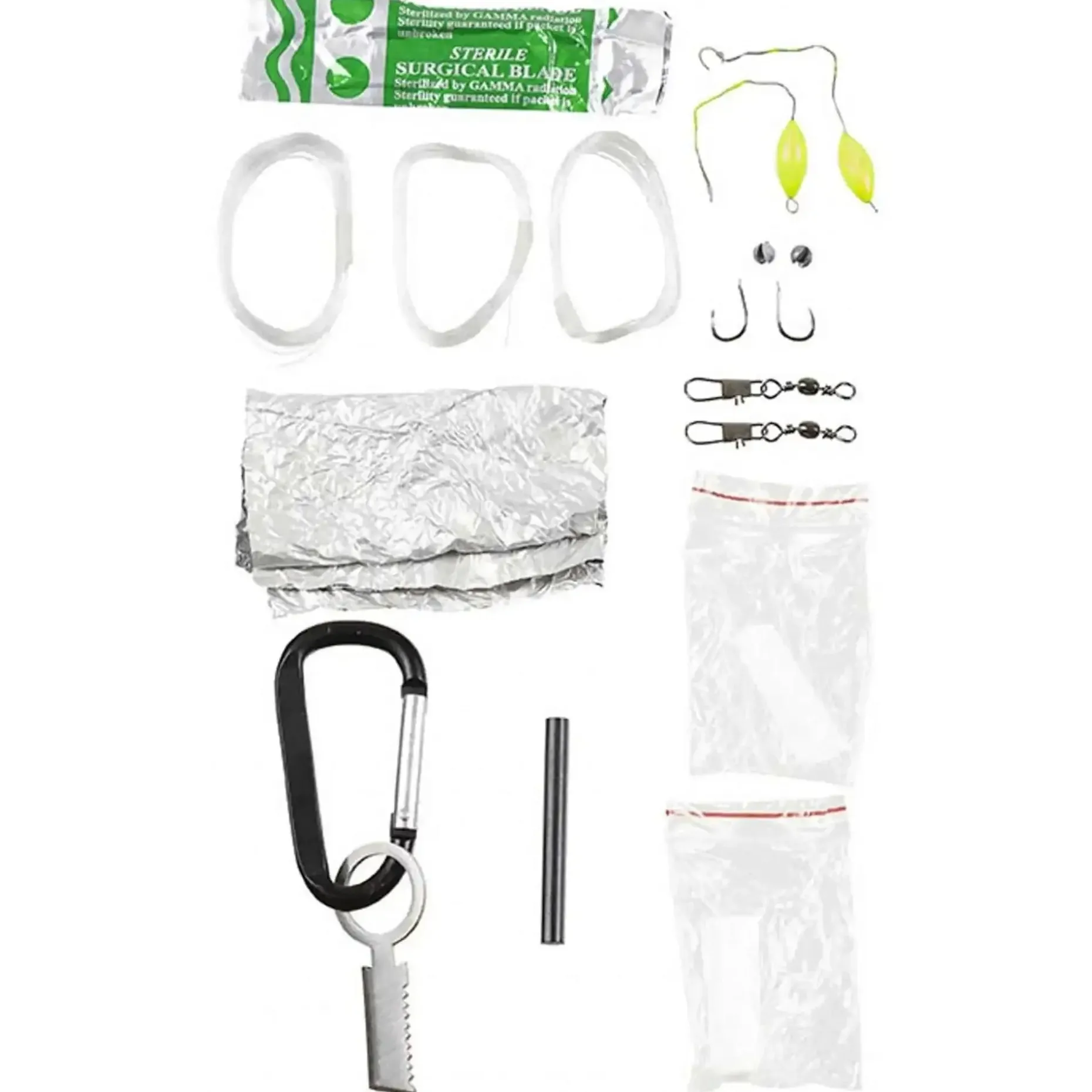 Das MFH Survival Set Parachute Cord ist ein praktischer Schlüsselanhänger mit Karabiner. Er beinhaltet nützliche Gadgets, die Dir in Notsituationen weiterhelfen können und kann praktischerweise am Rucksack, Schlüsselbund oder Gürtel befestigt werden.