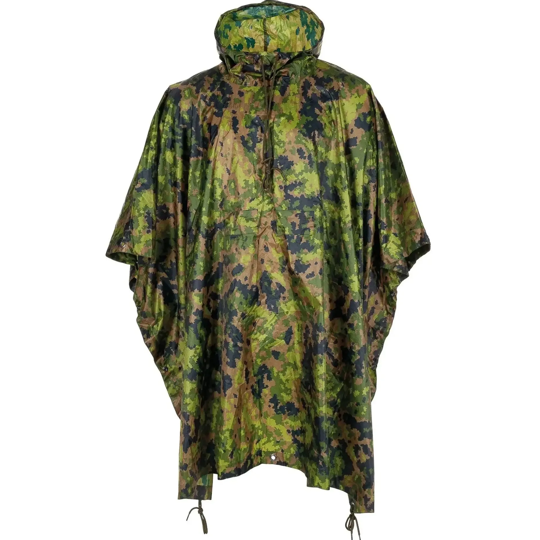 Der US Regenponcho Ripstop ist ein vielseitig einsetzbarer Poncho mit verstellbarer Kapuze, Kordelband und Stopper. Due verschweißten Nähte halten Dich bei Regenwetter trocken, dank seitlich umlaufender Druckknöpfe. ist er beidseitig verwendbar.
