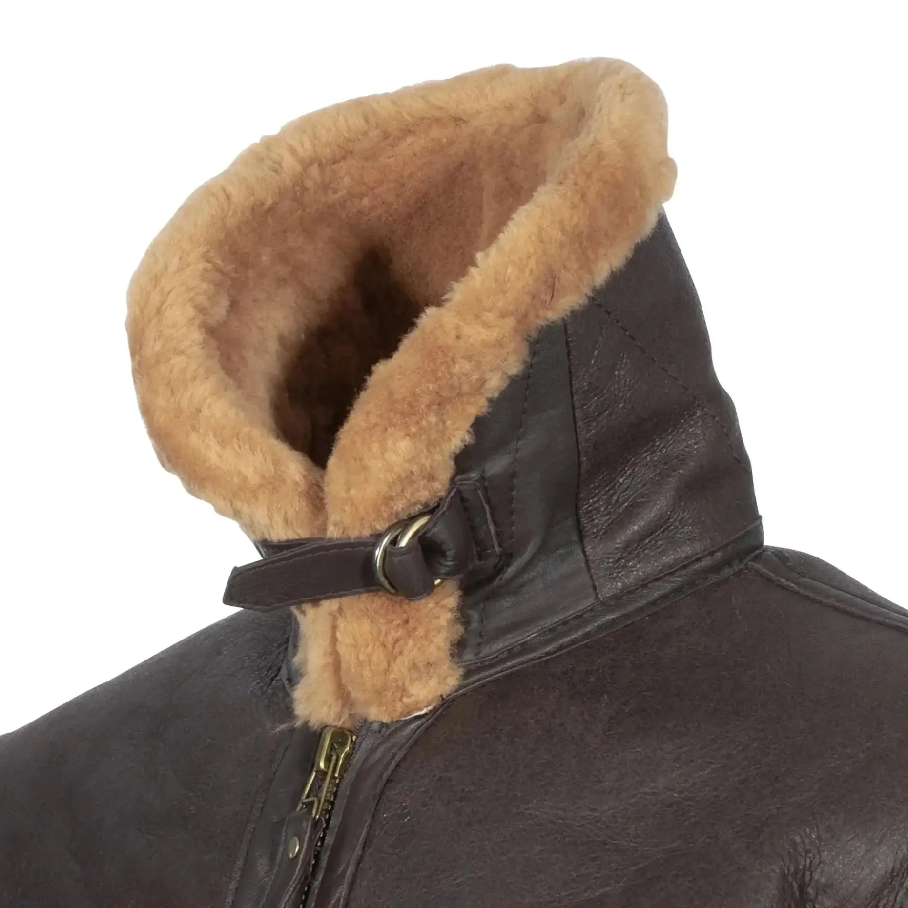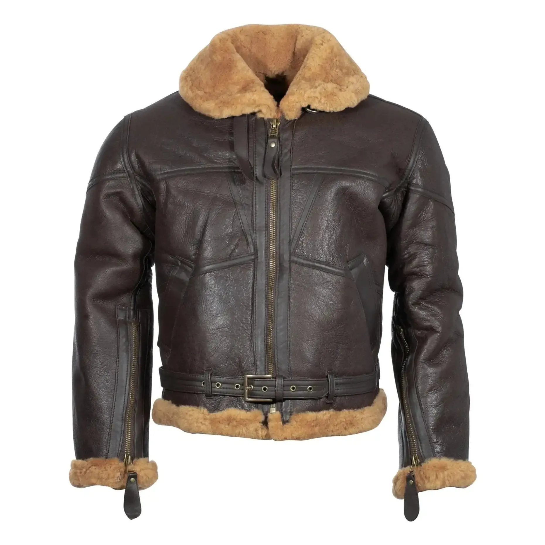 Die Britische Bomberjacke RAF Lammfell ist der Nachbau der legendären Pilotenjacke der British Royal Airforce aus dem Zweiten Weltkrieg. Sie besteht aus weichem, superwarmem Lammfell im Retro Look und verfügt über farblich abgesetzte Nähte. Der Frontreißverschluss ist besonders robust und die Jacke besitzt 2 Riegelschnallen am Kragen sowie einen Halbgürtel mit Messingschließe. Für eine optimale Belüftung sind Belüftungslöcher unter den Achseln eingearbeitet. Die Ärmelabschlüsse sind mit Reißverschlüssen versehen. Perfekt für alle, die einen authentischen Vintage-Look schätzen und sich in kalten Wintern wohlfühlen möchten.