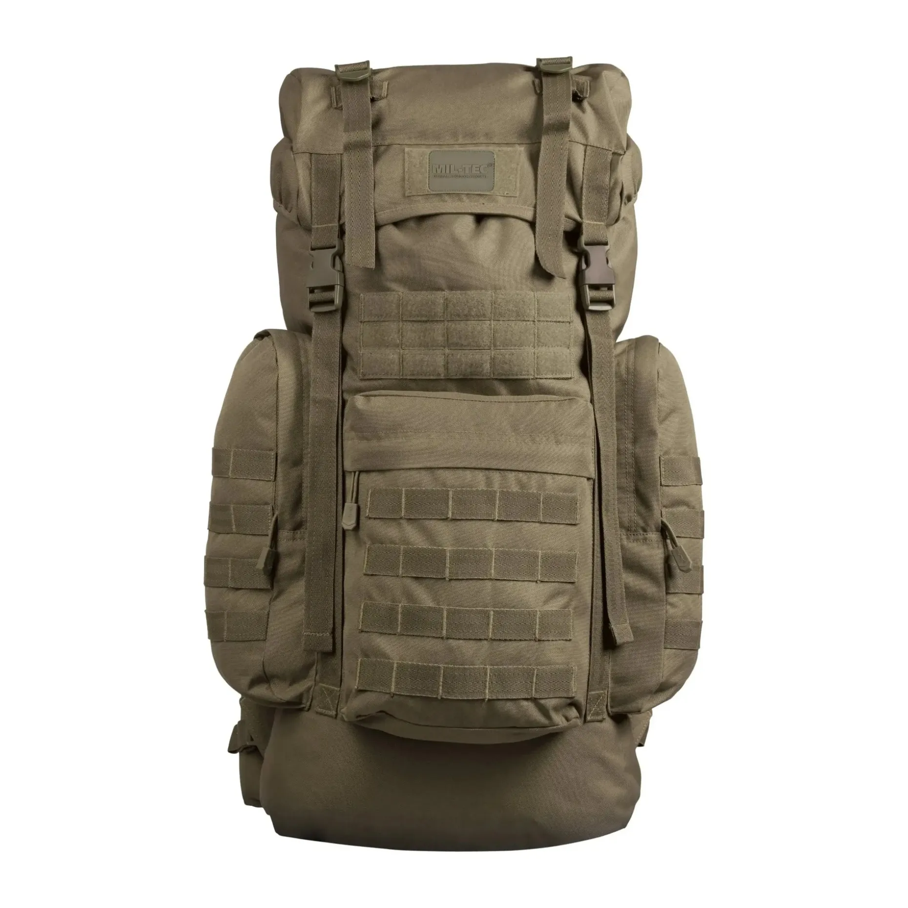 Der BW Kampfrucksack Gen.II verfügt über ein großes Hauptfach mit abgetrennter Innentasche für die Isomatte sowie einen doppelten Kordelzug mit Stöpsel oben am Hauptfach für eine sichere Aufbewahrung deiner Ausrüstung. Zusätzlich bietet der Rucksack ein Klettpatch vorne sowie eine aufgesetzte Fronttasche mit Reißverschluss und Molle-Aufnahmeschlaufen für zusätzliche Organisation.