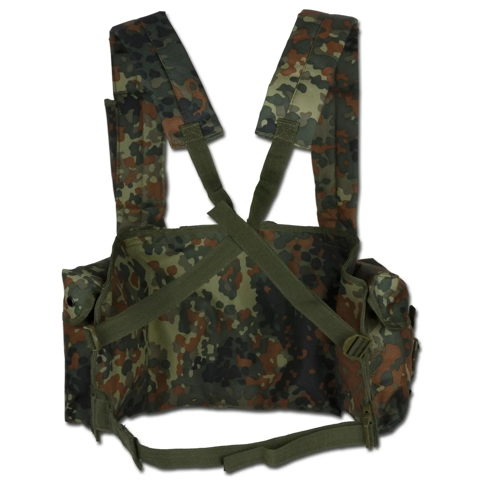 Im Inneren des Chest Rigs findest Du ein großes Kartenfach mit Druckknöpfen, um Deine Karten sicher zu verstauen. Der Schultergurt verfügt über eine aufgesetzte Tasche mit Klettverschluss, ideal für kleine Gegenstände, die Du schnell zur Hand haben möchtest. Die gepolsterten Schultergurte sorgen für angenehmen Tragekomfort, während die Länge und Weite verstellbar sind, damit das Chest Rig perfekt sitzt.